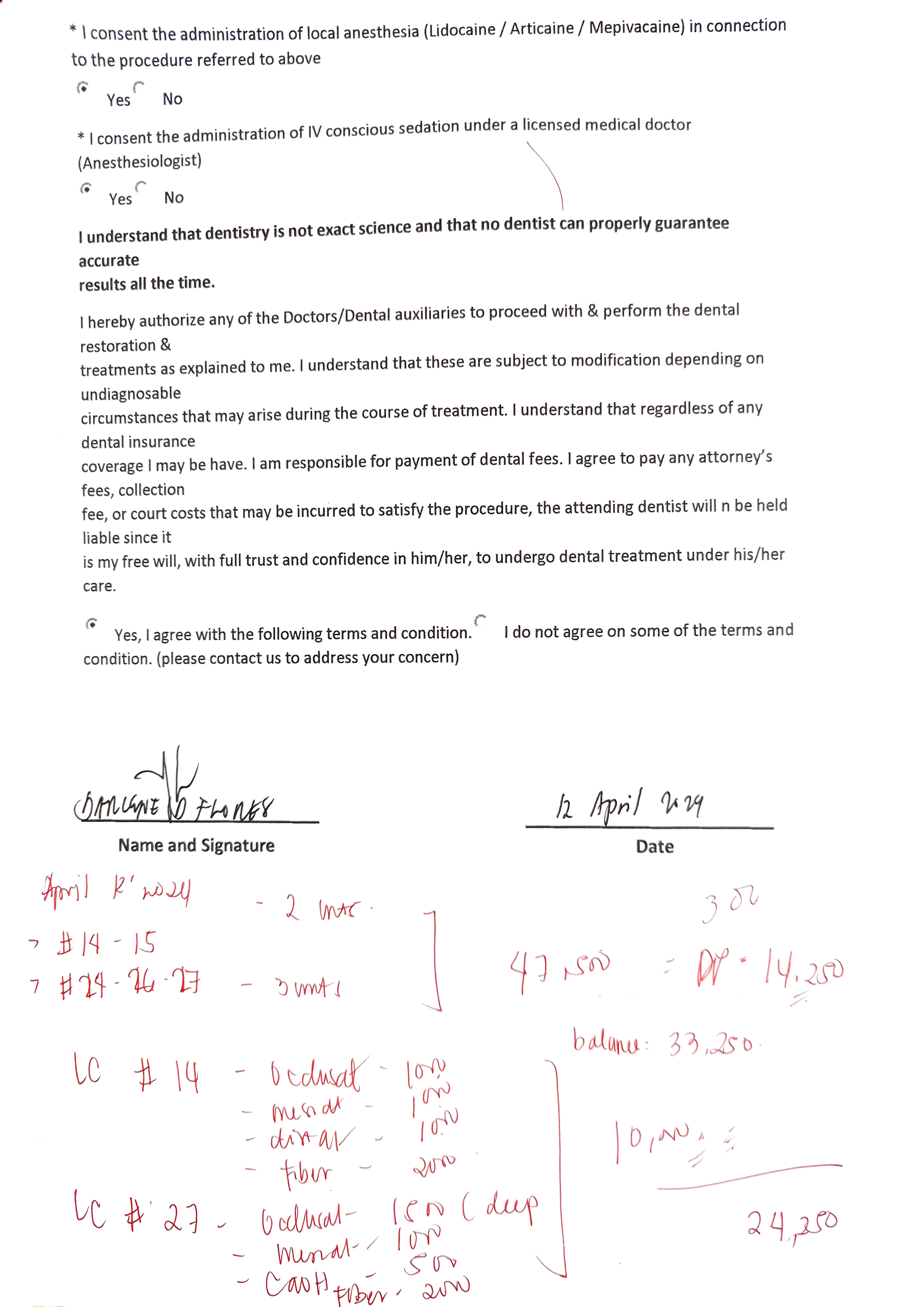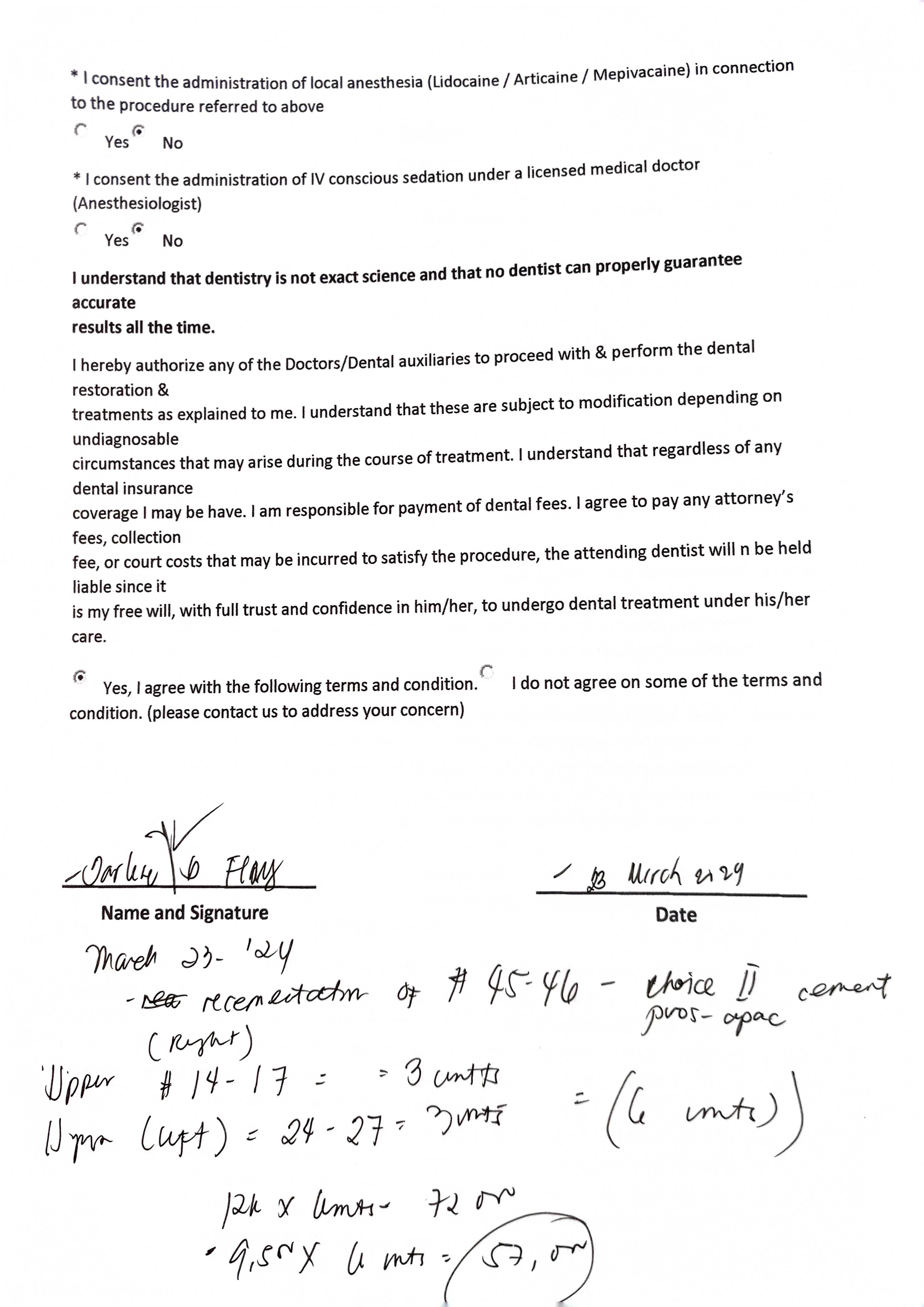Edit Record Check our patient data records. Add patient information Patient Info Profile picture Last Name First Name Middle Name Birthdate Age Street Barangay City Country Zip Code Contact number Email Procedure 01/06/24 - Check up for bridge - xray 01/13/24 RCT #45 dressing = eugenol constricted canal 01/20/24 tooth #44 RCT 22 mm dressing: formocresol 01/30/24- 22mm CAOH paste *no pain 02/03/24 obturate 15/ fine gp sealer bio ceramic mTA 02/09/24 prep tooth #45 and #34 shade A3 02/17/24 installation of crown 03/23/24 recementation of #45-46- choice II cement pros-apac upper right #14-17- 3 units upper left #24-27- 3 units 04/12/24 #14-15 #24,26,27 LC # 14- Occlusal mesial distal fiber LC # 27- occlusal(deep) mesial CaOH fiber 04/20/24 installed of crown File img_20240106_102502.jpg File 2 img_20240106_102511.jpg File 3 img_20240323_112508.jpg File 4 img_20240405_142307.jpg File 5 darlene_flores.jpg File 6 img_20240412_133916.jpg File 7 File 8 File 9 File 10 File 11 File 12 File 13 File 14 File 15 File 16 File 17 File 18 File 19 File 20 Retain Record Retain Record Yes No Save Your Changes