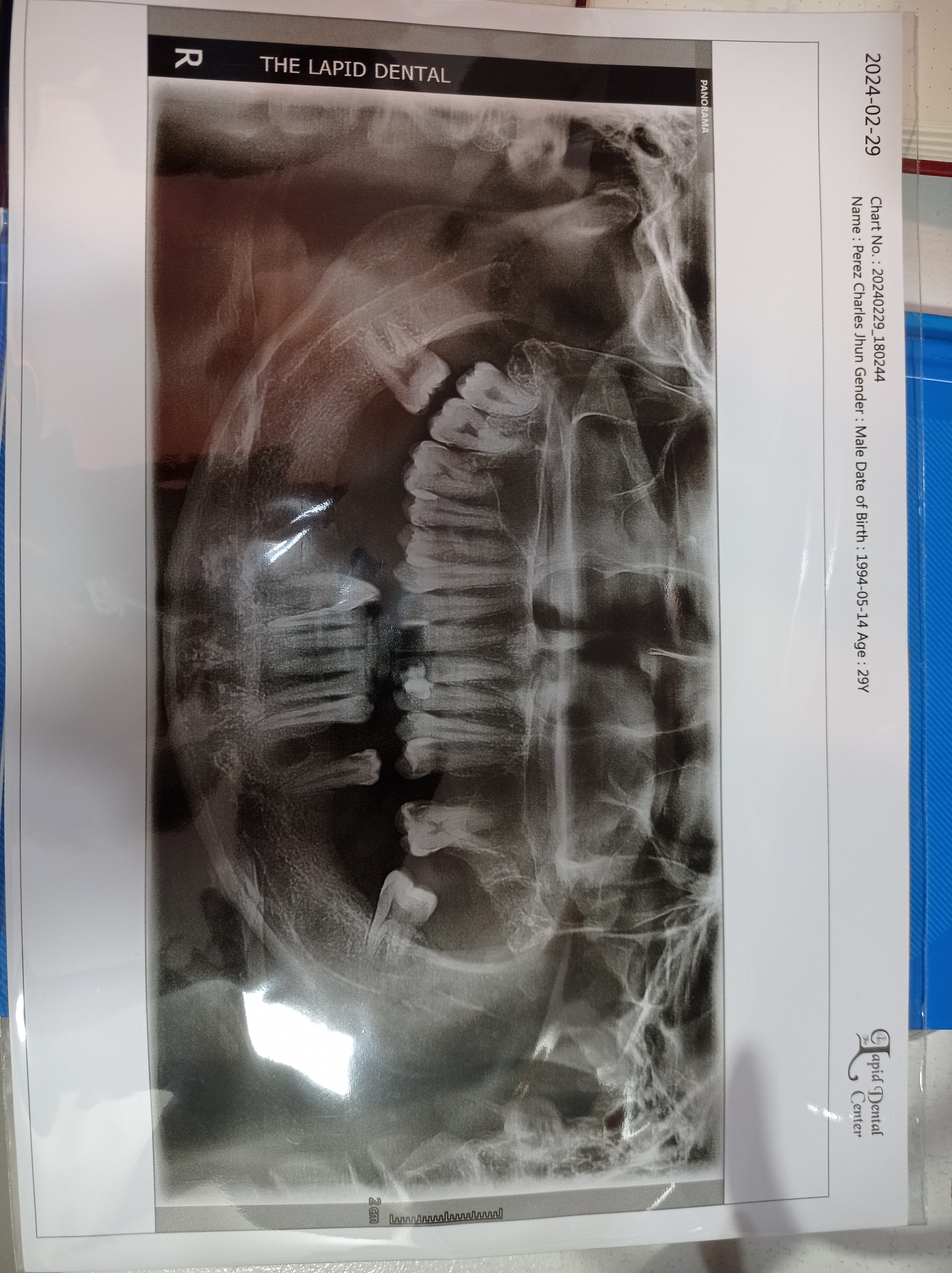 Edit Record Check our patient data records. Add patient information Patient Info Profile picture Last Name First Name Middle Name Birthdate Age Street Barangay City Country Zip Code Contact number Email Procedure 01/31/24 EXO #37 #34 with ozone 02/06/24 Exo 25, 27,28 with ozone and suture (chromic gut) 02/24/24 Exo #44 03/09/24 -LC #21 distal/incisal/lingual #22-mesial -incisal -lingual + CaoH 04-02-24 suture removal 05/03/24 connective tissue graft 05/17/24 LC #24 O,D CAoH LC #27 O,D,M (deep), L CaoH fiber 05/25/24 LC #36 O,B Lc #34 O,M fiber CaoH cervical 06/08/24 LC #41 M,F LC #31 M,F LC #48 O,B Caoh 08/31/24 LC #14 OM, OD #16 O,L CaoH 09/07/24 inst U 14 NITI/ 0.22 roth LC #17 O (deep seated),L #18 O (deep seated) 10/05/24 inst. Lower Adj upper 11/21/24 adj reattached #31 same wire 01/10/25 adj double wiring upper 16 NITI and 14 NITI lower 14 NITI reattached #32 installed #22 opening of canal w/ irrigation xray #21 for RCT #21 w /abcess(drainage) 01/18/25 RCT #21-23mm file 25 3 meetings 3,333 01/25/25 2nd RCT #21-23mm CaoH paste dressing peri-apical abcess laser 02/08/25 RCT #21 obturate MTA sealed #40 gutta percha-23mm Adj. same wire 03/22/25 same wire RW #31 04/30/25 adj 05/31/25 closing space on anterior upper IpR #12 18 ss u 16 ss l 06/28/25 same wire 07/26/25 same wire #43 mesial RW closing space upper 08/16/25 ADJ 09/27/25 same wire rw #22 10/28/25 adjustment same wire 12/09/25 adjustment 18 SS Upper 18 SS Lower 01/14/26 adjustment 16x16 SS NiTi 03/03/2026 Adjustment File img_20240131_134549.jpg File 2 img_20240309_154103.jpg File 3 img_20240309_172253.jpg File 4 img_20240322_102958.jpg File 5 img_20240322_102902.jpg File 6 img_20240322_102808.jpg File 7 img_20240322_102701.jpg File 8 charles_jhun_perez.jpg File 9 File 10 File 11 File 12 File 13 File 14 File 15 File 16 File 17 File 18 File 19 File 20 Retain Record Retain Record Yes No Save Your Changes