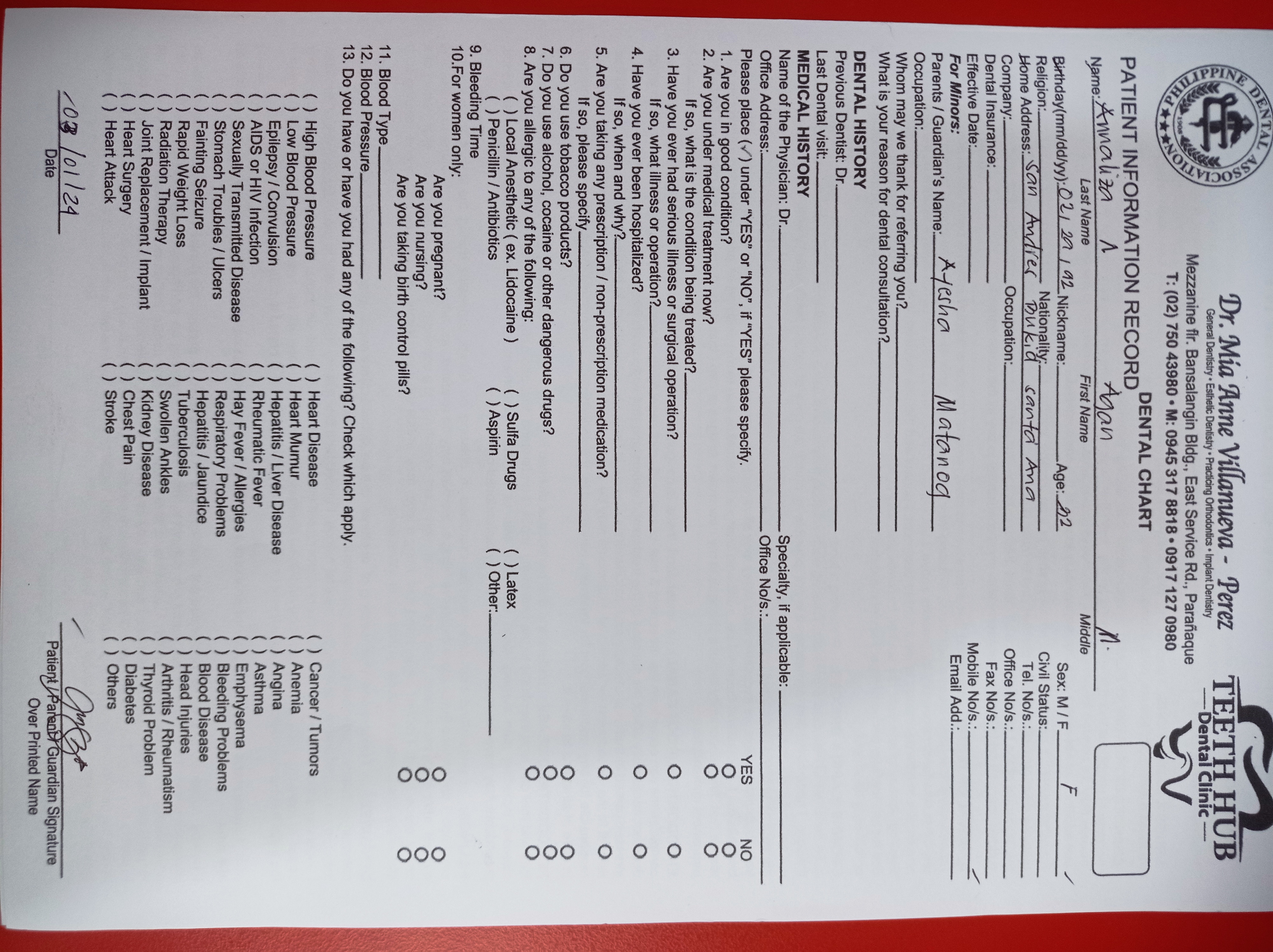 Edit Record Check our patient data records. Add patient information Patient Info Profile picture Last Name First Name Middle Name Birthdate Age Street Barangay City Country Zip Code Contact number Email Procedure 03-01-24 -check up for Exo File img_20240301_163134.jpg File 2 File 3 File 4 File 5 File 6 File 7 File 8 File 9 File 10 File 11 File 12 File 13 File 14 File 15 File 16 File 17 File 18 File 19 File 20 Retain Record Retain Record Yes No Save Your Changes