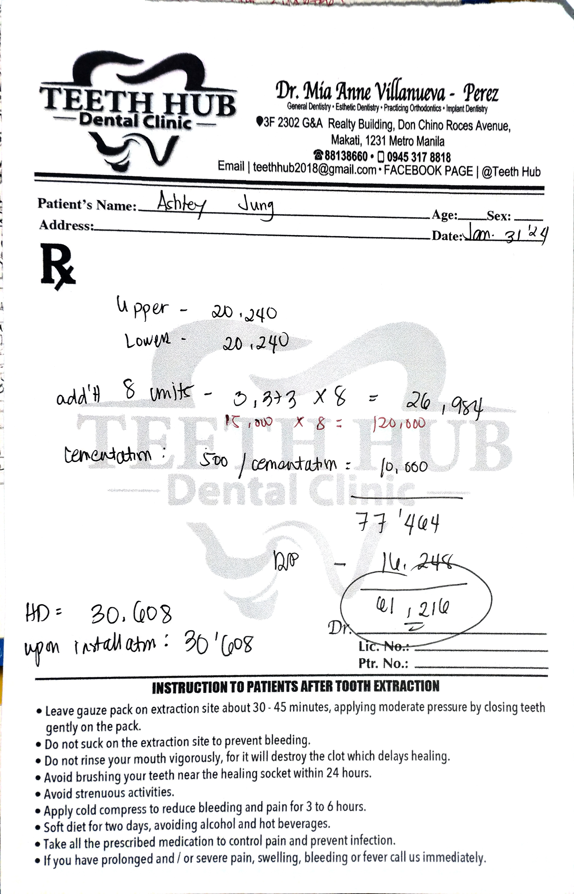 Edit Record Check our patient data records. Add patient information Patient Info Profile picture Last Name First Name Middle Name Birthdate Age Street Barangay City Country Zip Code Contact number Email Procedure 01/20/24 8 units upper and lower Direct Com. veneers DP 16, 248 01/31/24 indirect ceramage shade B1 upper 10 units #15-#25 lower 10 units #35-#45 DP: 30,608 02/07/24 installation of 20 units of ceramage fully paid 09/06/24 OP 3 units DCV (temporary) 12/23/24 LC 4U #33,34,35 #45 OP w/ air polisher 12/12/25 OP w/ air polisher 6 units composite veneers (#43, 44, 45, 33, 34, 35) File img_20240131_140751.jpg File 2 File 3 File 4 File 5 File 6 File 7 File 8 File 9 File 10 File 11 File 12 File 13 File 14 File 15 File 16 File 17 File 18 File 19 File 20 Retain Record Retain Record Yes No Save Your Changes
