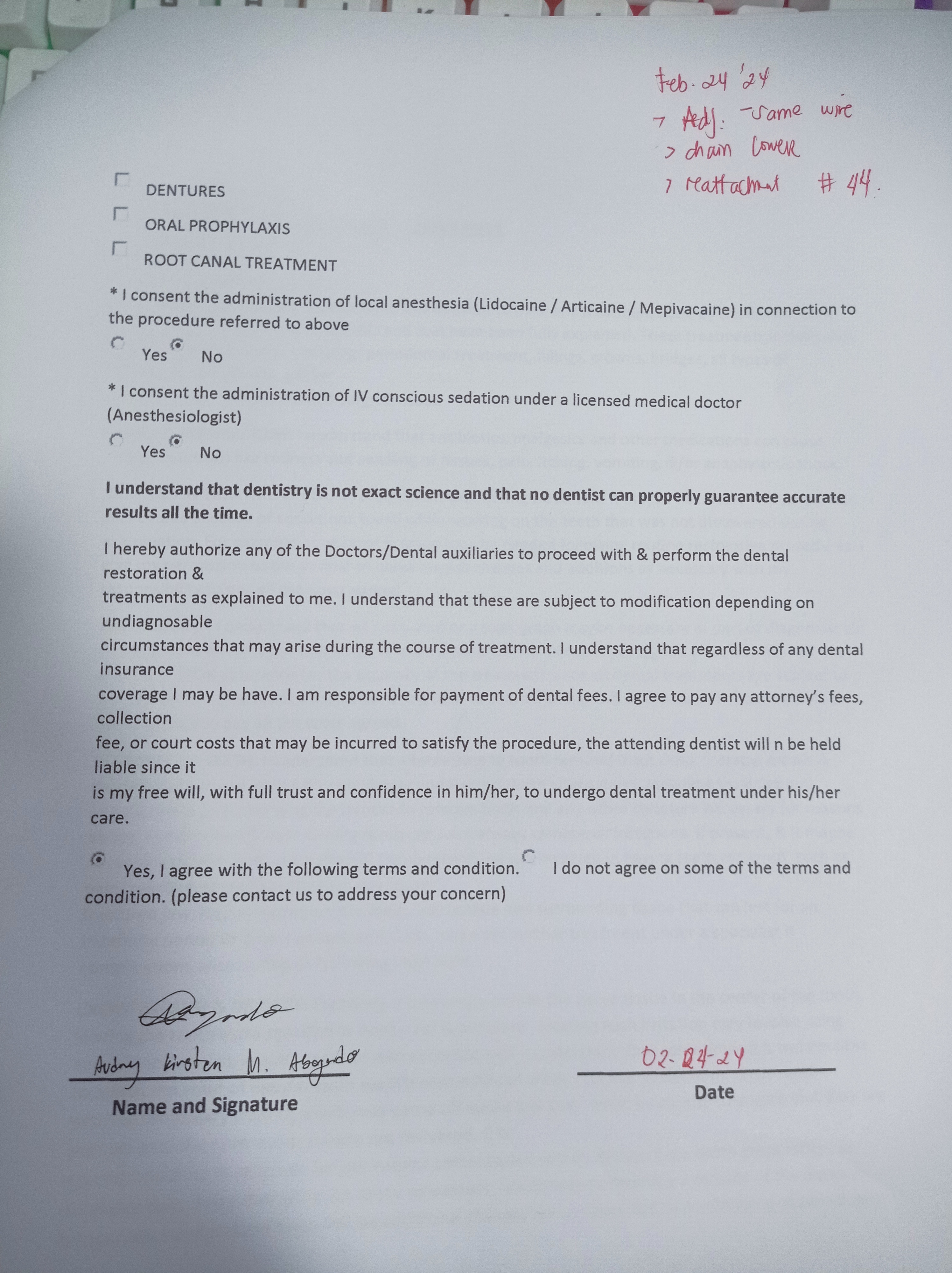 Edit Record Check our patient data records. Add patient information Patient Info Profile picture Last Name First Name Middle Name Birthdate Age Street Barangay City Country Zip Code Contact number Email Procedure 8/20/22- OP / RESTO #26 Oclusal & Disto lingual surface; #26 Occlusal & buccal pit/ EXO #65RF #46 10/19/22 - Ints of braces 50,000 less 3,999 (10,000) 11/19/22-ADJ 12/27/22-adj 01/22/23-ADJ 06/29/23-exo 14 *13 to extrude for laser/same wire 07/08/23- EXO #24 07/19/23- 14 NITI U/Lingual button #13/#13 extrude/16 Niti L 08/19/23- Extrude 13,same wire 09/16/23- same wire/ elastic Fox 13 to 43 to 44/18NiTi Lower 10/18/23- 14 NITI UPPER/ #13 BRACKET INSTALLED/ 18niti lower coil spring 44-45 ***request cbct 11/25/23- 16 NiTi U, 14 NiTi L #23 Observe all Lower towards right 12/22/23- 16 niti U/ 16 ss lower all lower move to right 01/27/24 ADJ reattachment 44 same wire adjustment all lower to the right 02/24/24 Adj-same wire chain lower reattachment #44 03/23/24 Adj reattachment #45 same wire class III elastic rabbit 04/20/24 Adj same wire chain lower 05/25/24 reattached #44 class III elastic penguin 18 SS lower w/ loop 06/20/24 #23 odontectomy near sinus 07/04/24 OP suture removal same wire class III elastic w/ loop rabbit .5 oz. 08/17/24 Reattached #44 #45 bite block 45/35 16 SS L class III elastic Q1/Q1v penguin 09/14/24 same wire 10/19/24 same wire reattached #15 11/16/24 same wire class III elastic rabbit 3oz 12/21/24 same wire chain L cross elastic Q IV to Q II 01/25/25 adj same wire reattached #35 slant elastic penguin 03/01/25 elastic slant penguin 18 SS L #35 reattached 04/09/25 elastic penguin 05/24/25 left class II rabbit right class II fox new bracket #35 reattached #11,#42 06/21/25 18 nITI U 16 SS L class III elastic chipmunk reattached #11,42 09/27/25 same wire reattached #32,15 11/15/25 Adjustment reattach #31, 32, 34 LC #34 - mesial #33 - mesial, distal #32 - mesial, distal #31 - mesial, distal #41 - mesial #42 - mesial #43 - cervical #44 - mesial 18 NITI lower Elastics- Rabbit 5oz QII-QIII class 3 12/27/25 Adjustment 02/07/26 18 SS lower Reattach #14 w/ class III Rabbit 5oz File abogado_kirsten.jpg File 2 abogado_kirsten_02.jpg File 3 audrey_kirsten_abogado.jpg File 4 kreistein_abogado.jpg File 5 File 6 File 7 File 8 File 9 File 10 File 11 File 12 File 13 File 14 File 15 File 16 File 17 File 18 File 19 File 20 Retain Record Retain Record Yes No Save Your Changes