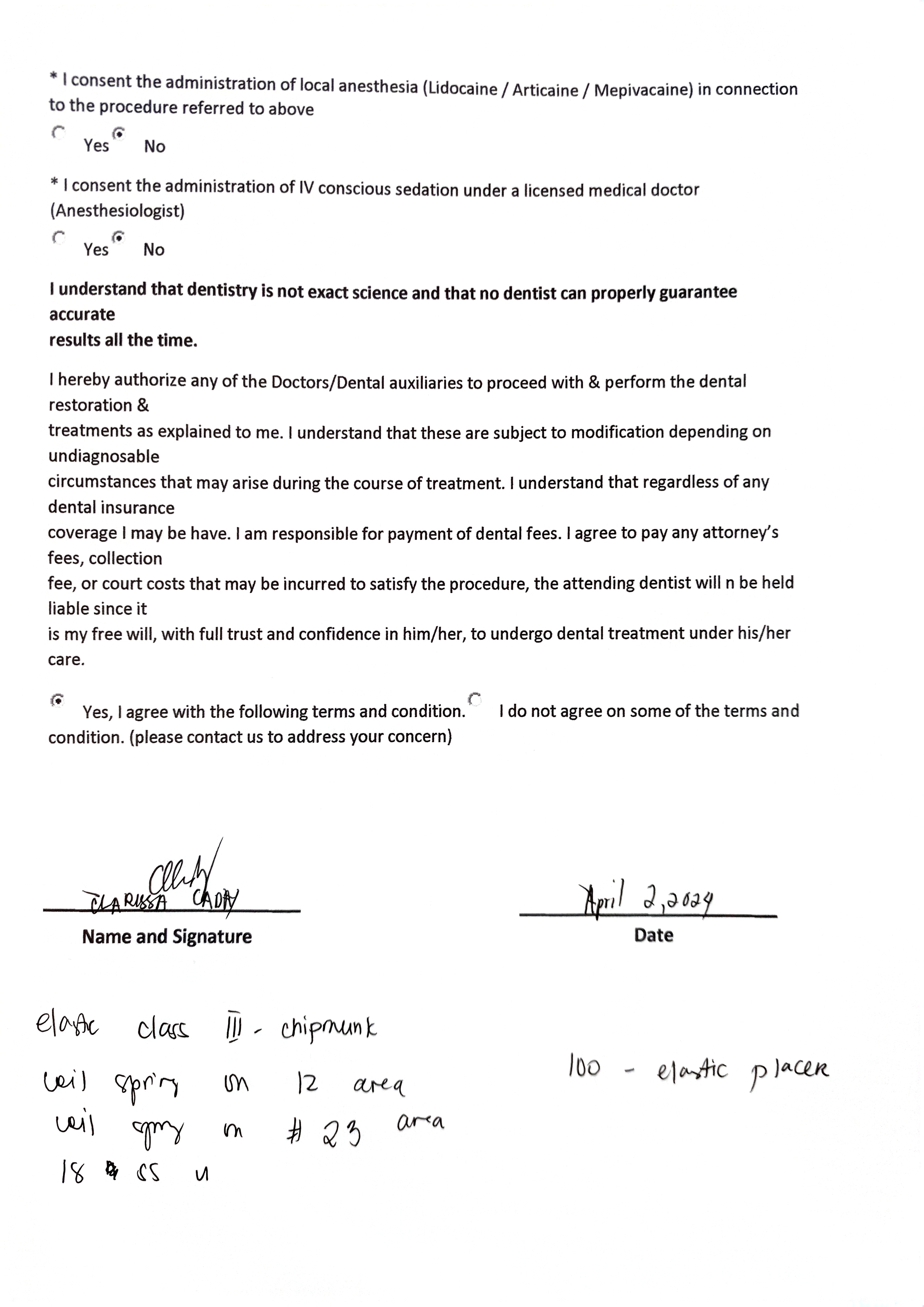 Edit Record Check our patient data records. Add patient information Patient Info Profile picture Last Name First Name Middle Name Birthdate Age Street Barangay City Country Zip Code Contact number Email Procedure 6/23/23-Informed consent Ortho OP/ Impression/ Intraoral & extraoral photos/ PA radiographh Referred for Cephalometric radiograph For recontouring #22 06/28/23- Informed Consent & Ortho Agreement Ortho Installation/MBT .022/UL - NiTi-14/Buccal Tube #16, #26, #35 #22 for reshaping 09/15/23- same wire L to Left 01/12/24- 18 ss lower with loop class III elastic fox 18 niti upper 02/07/24- 18ss U/ Lower same wire Class III elastic R-chipmnk L- rabbit 04-02-24 elastic class III chipmunk coil spring on 12 area coil spring on #23 area 18 SS U elastic placer File clarrry_caday.jpg File 2 File 3 File 4 File 5 File 6 File 7 File 8 File 9 File 10 File 11 File 12 File 13 File 14 File 15 File 16 File 17 File 18 File 19 File 20 Retain Record Retain Record Yes No Save Your Changes