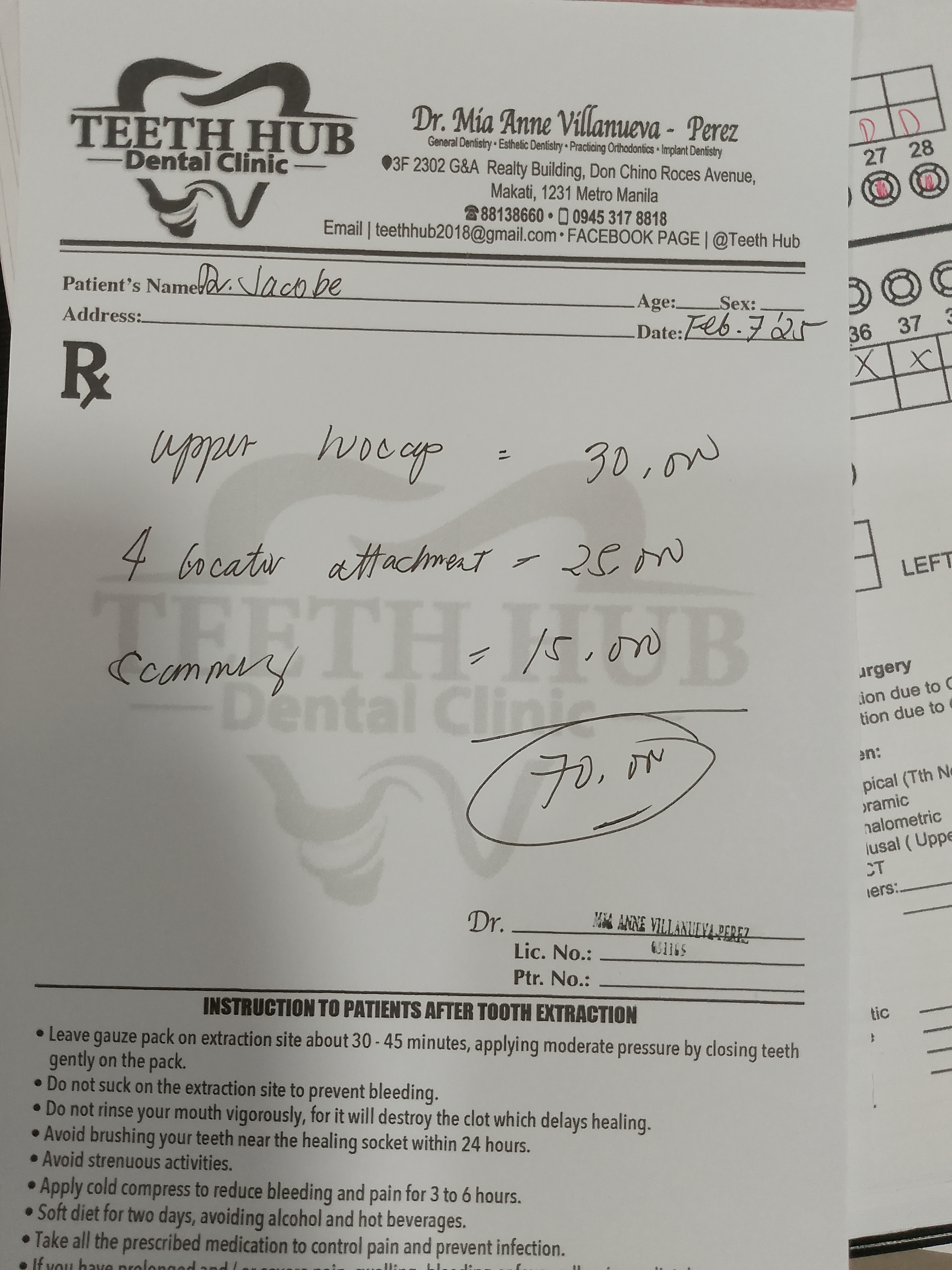 Edit Record Check our patient data records. Add patient information Patient Info Profile picture Last Name First Name Middle Name Birthdate Age Street Barangay City Country Zip Code Contact number Email Procedure 5/31/22- Check Up 7/4/22- Implant surgery 7/22/22- Removal of suture lower adjust denture upper, Ozone theraphy , laser osseointegration. 11/23/22- reline 12/3/22- 8healing abtments/Cor/bite analysis/ 12/15/22- iMPRESSION 12/24/22-Laser 01/11/23- chekup 01/18/23-DPforImplant/ 1/31/23- Ints of Ivocap dentures 07/18/23- change of locator to ball attachment GH 6mm 06/26/23- install ball and socket abutment 31 change to yellow rubber on locators #33, 42, 43 08/02/23- check up/ requesr to change 41 locator attachment to bal attachment 02/07/24 after 3 months recall cleaning of implant cleaning of denture 05/01/24 OP denture OP implant change of rubber NOTE*** Rubber color #11- trnasparent #43-transparent #13- pink #33- transparent #21- pink #41/31- black #23- transparent 02/07/25 op cleaning of denture xray repair of denture 02/25/25 trial bal 15k 03/06/25 install of denture File img_20221007_111836_700.jpg File 2 img_20221007_111820_077.jpg File 3 img_20221007_111912_694.jpg File 4 363471424_642223551242951_6085808322690255571_n.jpg File 5 img_20250207_143000_526.jpg File 6 File 7 File 8 File 9 File 10 File 11 File 12 File 13 File 14 File 15 File 16 File 17 File 18 File 19 File 20 Retain Record Retain Record Yes No Save Your Changes