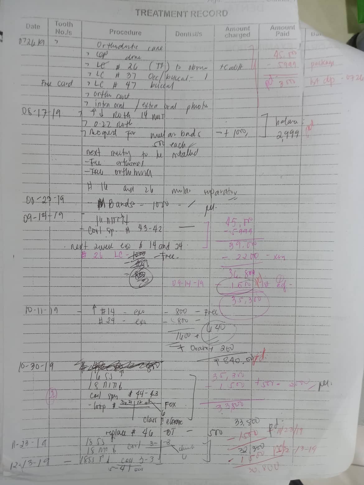 Edit Record Check our patient data records. Add patient information Patient Info Profile picture Last Name First Name Middle Name Birthdate Age Street Barangay City Country Zip Code Contact number Email Procedure 08/28/21- adj rabbit/ penguin all lower to left 42 09-25-21-adj rabbit - all lower to left 43 to left 02/12/21 OP ADJ. 16x16 Enmass class ll elastic - fox lower ss (to left) 10/30/21-43 to left/ class 3 elastic rabbit- crimpable hook to upper 6s 12/08/21- ADJ 16X16 SS UL/ CHIPMNK- 13TO 43/ PENGUIN 23-25 TO 33-34-35-36 2/5/22-same wire/ button 33/34/35 to 23/25/26 s elastic rabbit/ cross elastic penguin 44 to 12 03/12/22 - adj. same wire upper/ 18 ss lower/ penguin 43 to 23/ 33 to 26/ all lower to left/ lingual button 33/34/35 s elastic to 23/25- fox 05/07/22 - same wire upper/ lower 16x16 niti button S- elastic on 33/34/35 chipmnk elastic on 44 to 12- rabbit 6/24/22- same wire upper/ 18ss lower/ rabbit 45 to 12 CH/ rabbit 33 to 26/ chipmnk S-elastic 34 to 23/ 35 to 25 8/6/22- same wire/ rabbit 33-26/ chipmnk 45 to 12 9/24/22- UL SAME WIRE, U INDIV, L CHAIN #43 - #36, I NDIV #44#45, CHIPMUNK, MONKEY 11/05/22-adj 01/14/23-adj 04/1/23- UL same wire/Reattached #15 5/06/23-UL same wire; chain 3rdQ; reattach molar band 06/10/23- Informed Consent Ortho UL same wire Chain #42-#36 Penguin #33 - #26; Monkey #43 - # 23 Resto #27DO 07/29/23-relapse on lower RQ/ Same wire U/ 16 ss L/ Penguin 43 to 33 to 23/ CHIPMUNK 43 TO 13 TO 14 08/26/23- rw #42 Distal Cross elastic monkey Chipmunk - S elastic #35,34 Triangle #13,44,43 09/30/23- S elastic 34/35 chipmunk/ rabbit 33 to 26/ 45 to 13 same wire 11/03/23- 16x16 ss U #21-22 extrude same wire on L 12/08/23- 16X 22 SS ul/ Settling bite/ elastic penguin and fox 01/13/24 ADJ same wire combination of elastic (chipmunk + penguin on posterior left) stable bite\(for removal by march/april) 02/17/24 ADJ same wire box elastic rabbit 03/23/24 same wire stabilization of ligature wire penguin cross elastic(left and right quadrant) front trapezoid 13/23 43/33 04/20/24 removal of brace reconstruction of canine 13/23 after 6 months recall LC #25 distal 09/28/24 Recall of reconstruction of canine 02/01/25 3 cycle teeth whitening OP initial shade A3 post procedure shade A1 File 300975948_1397294404014666_5769015363138877157_n.jpg File 2 301354118_527425612483031_4102383764584217184_n.jpg File 3 303132507_1071903747050560_2088945737883308754_n.jpg File 4 333088642_1424779924927855_1939822497719410431_n.jpg File 5 333090677_208050631774162_1765847162387765432_n.jpg File 6 img_20240405_155646.jpg File 7 File 8 File 9 File 10 File 11 File 12 File 13 File 14 File 15 File 16 File 17 File 18 File 19 File 20 Retain Record Retain Record Yes No Save Your Changes