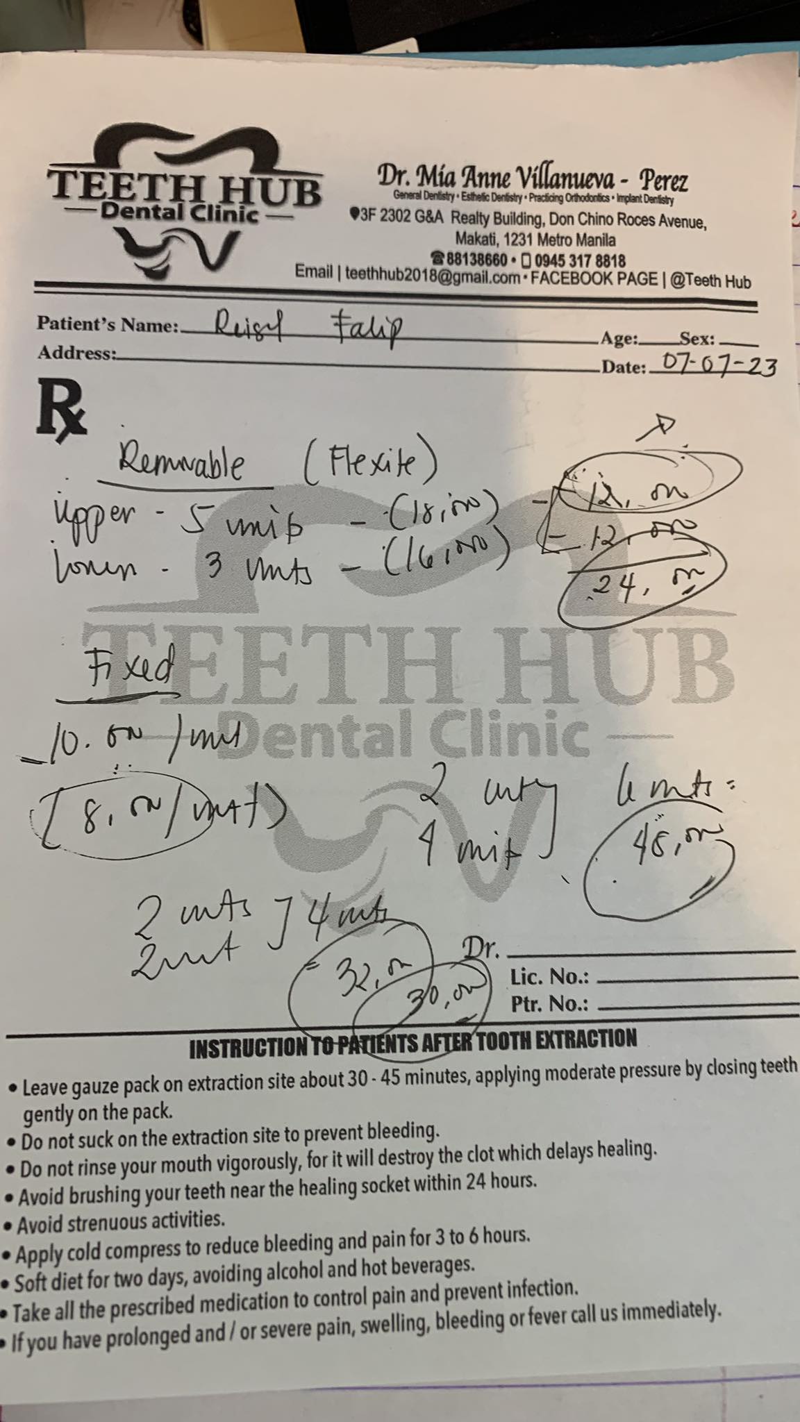 Edit Record Check our patient data records. Add patient information Patient Info Profile picture Last Name First Name Middle Name Birthdate Age Street Barangay City Country Zip Code Contact number Email Procedure 2/11/22- check up- TMJ/ Ortho/ laser/ bite analysis- 70 000 /15k dp 02/24/22- mbt EPS upper installed- 16 niti u/ laser TMJ relief/ 03/2/21- cut distal wire on 16/ TMJ laser relief 3/15/22- installation of lower braces 1st adjustment upper/ 16 niti u/ 14 niti l/ tmj laser relief 04/22/22- exo 16 16 ss UL- reattached 41 tmj pain relief 05/25/22 - same wire/ coil spring to midline- lower to left tmj pain relief 11/26/22- adj 01/21/23-ADJ 04/11/23- #11,41,31,43 reattached/ 16X22 UL chain U 05/30/23- UL - same wire Resto #27 (2 surfaces) #37 - xray/ ozone/ CaOH/ Temporary filling; observe for 1wk 06/06/23- Informed consent Ozone Resto #38DO + Dycal 07/07/23-16x22 u/l ligature wire upper and lower 08/09/23- Same wire 09/12/23- ADJUSTMENT #35 distal RW # 45-44 chain 10/06/23-adjust same wire 11/24/23- same wire, Chain (ligature wire UL) **** Removal of Braces December 16, 2023 ***** 1pm 12/16/23-removal braces impression UL lingual retainers on Upper 22 to 12 File 358866790_621041856466041_1560497444491582933_n.jpg File 2 357887775_1194130291258288_4041794646344997531_n.jpg File 3 File 4 File 5 File 6 File 7 File 8 File 9 File 10 File 11 File 12 File 13 File 14 File 15 File 16 File 17 File 18 File 19 File 20 Retain Record Retain Record Yes No Save Your Changes