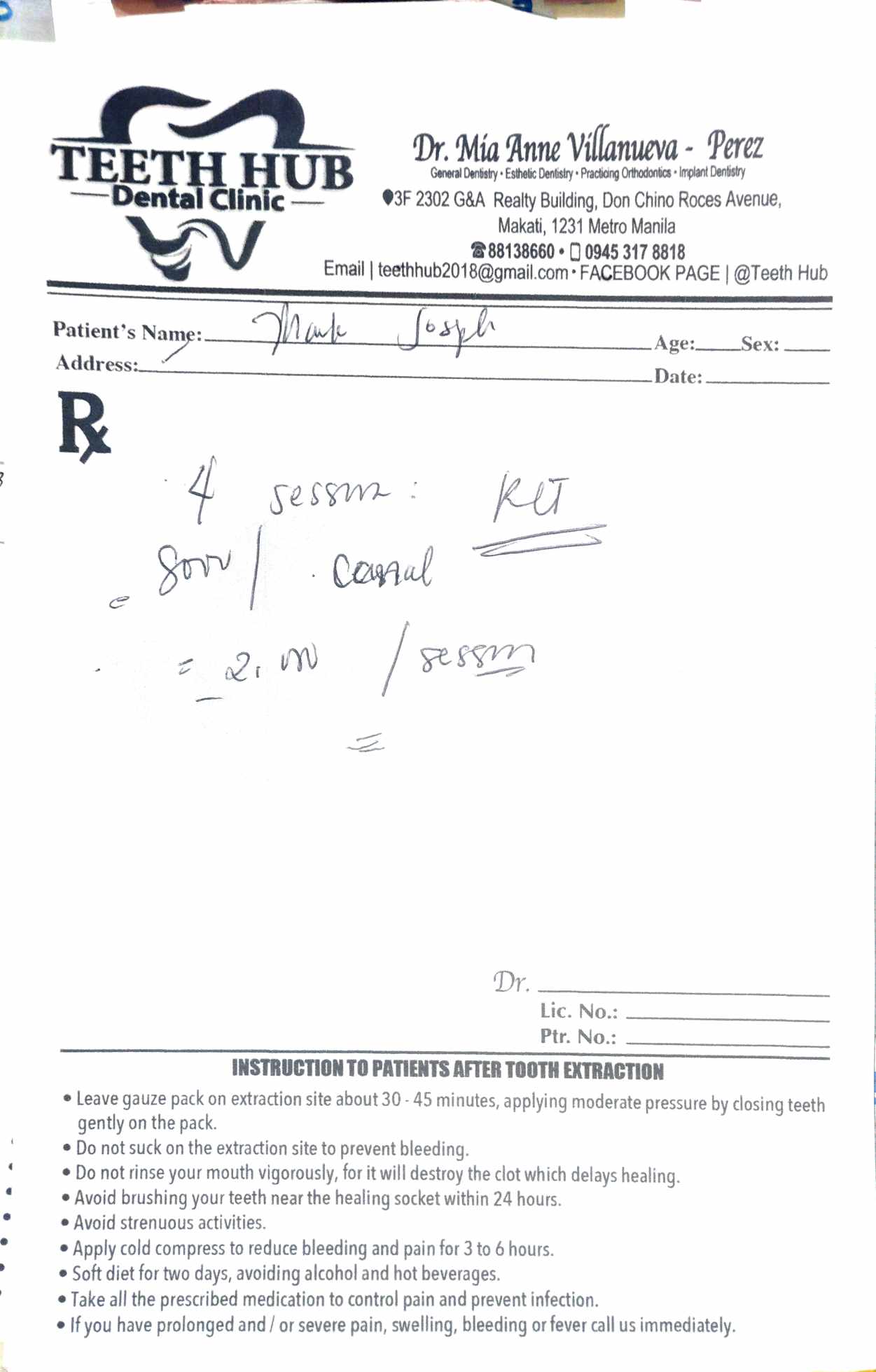 Edit Record Check our patient data records. Add patient information Patient Info Profile picture Last Name First Name Middle Name Birthdate Age Street Barangay City Country Zip Code Contact number Email Procedure 01/05/24 check up - Generalized periodontitis stage 3, grade A NSRP Q1 and Q2 = 10th Jan Q3 and Q4 = 24th Jan - Recall (February 23) - Feb 27 (initial for veneers) - March (dentures) 01/10/24 extraction/ozone NSRP- Q1 and Q2 with ozone LLT 01/23/24- NSRP Q3-Q4 with ozone and LLT Rx: sensedol vit c Exo 36 02/14/24 6 units veneers 1 unit fiber File img_20240105_150839.jpg File 2 423686710_893911579194427_8942391533745109166_n.jpg File 3 File 4 File 5 File 6 File 7 File 8 File 9 File 10 File 11 File 12 File 13 File 14 File 15 File 16 File 17 File 18 File 19 File 20 Retain Record Retain Record Yes No Save Your Changes