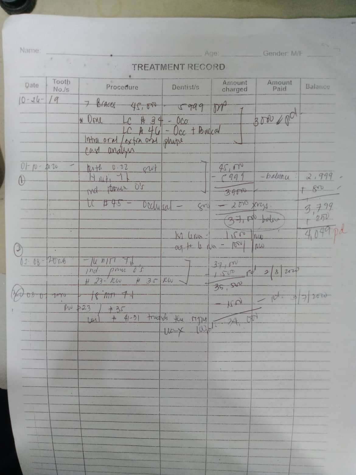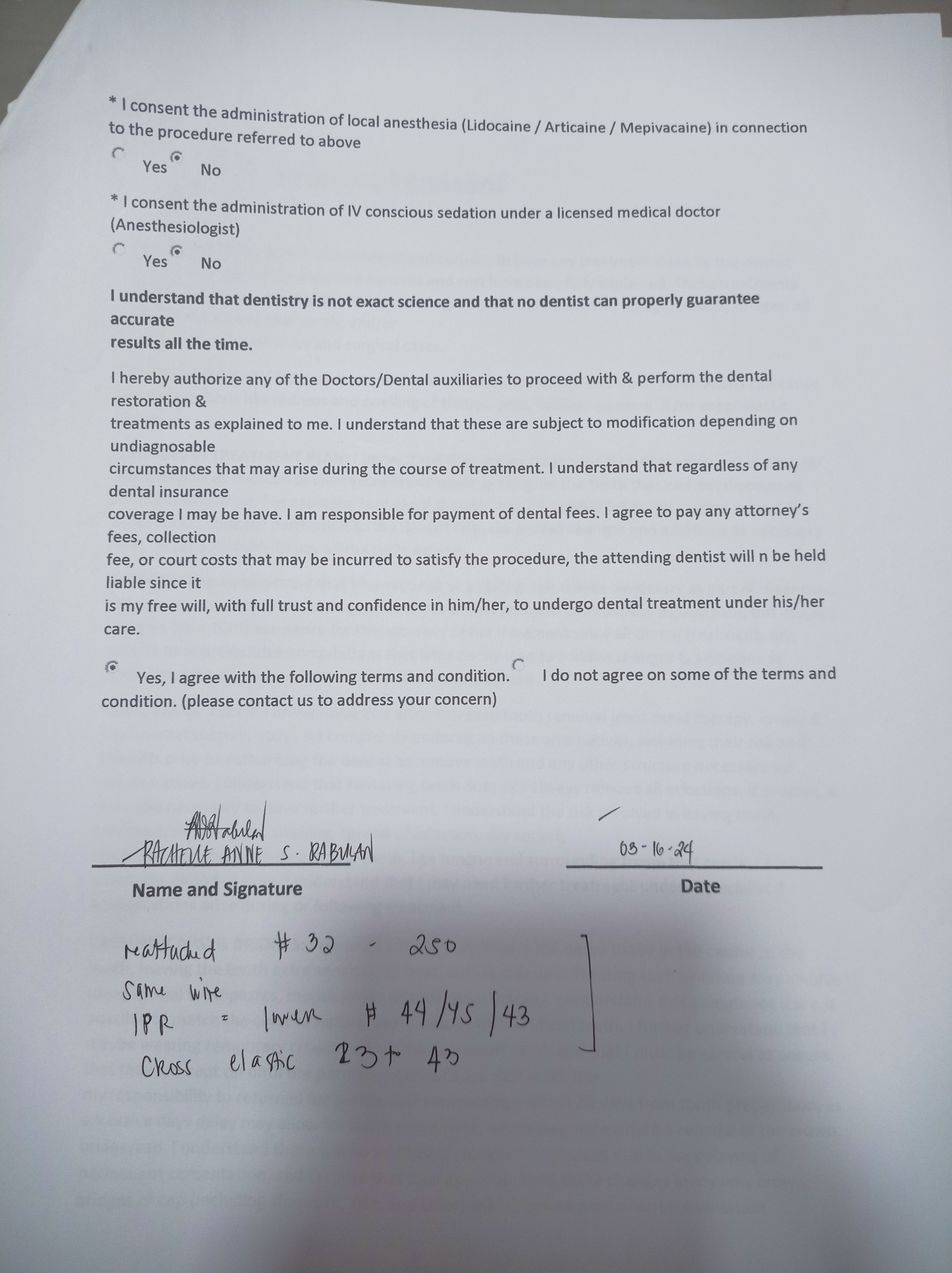 Edit Record Check our patient data records. Add patient information Patient Info Profile picture Last Name First Name Middle Name Birthdate Age Street Barangay City Country Zip Code Contact number Email Procedure 10/09/21- 18ss UL/ all lower to right slant elastic penguin(front) rabbit (sides) 43 to 16/ 33 to right upper loop/ 36 to upper left loop 2/19/22- rpi 24 class 2 elastic penguin with c. hook 23 lingualbutton- s elastic fox U 16x16 ss/ L same wire 4/13/22- same wires/ upper chain/ force 2 elastic 8/20/22-16X 16 SS Ul/ CHAIN UPPER/ CLASS 2 ELASTIC RABBIT 12/28/22- ADJ 05/20/23- Ortho/UL - same wire/Penguin #13- #33 07/1/23- 16x22 upper/ lower class 2 elastic fox *48 for removal 08/26/23- same Wire/ Chain Lower 10/21/23- 12/02/23- same wire, chain upper 12 w/ single power O on the anterior, Class 2- rabbit 01/14/24 ADJ same wire upper chain 03/16/24 reattached #32 same wire IPR= lower 44/45 /43 cross elastic 23 to 43 05/31/24 re attached #32,#35 Adj same wire chain upper class II elastic fox 08/01/24 same wire 10/19/24 elastic class fox 50z 12/21/24 for removal on Jan same wire chain U/L class II elastic 5oz rabbit 02/01/25 removal of brace LC #21 I,F 06/07/25 teeth whitening File 301340623_3248278875450204_6712318022435561467_n.jpg File 2 303547291_470994731354227_6377398103678807617_n.jpg File 3 301976795_5209588389169538_2102496721174701067_n.jpg File 4 rachelle_rabulan.jpg File 5 rabulan_rochelle.jpg File 6 rachelle_rabulan_1.jpg File 7 File 8 File 9 File 10 File 11 File 12 File 13 File 14 File 15 File 16 File 17 File 18 File 19 File 20 Retain Record Retain Record Yes No Save Your Changes