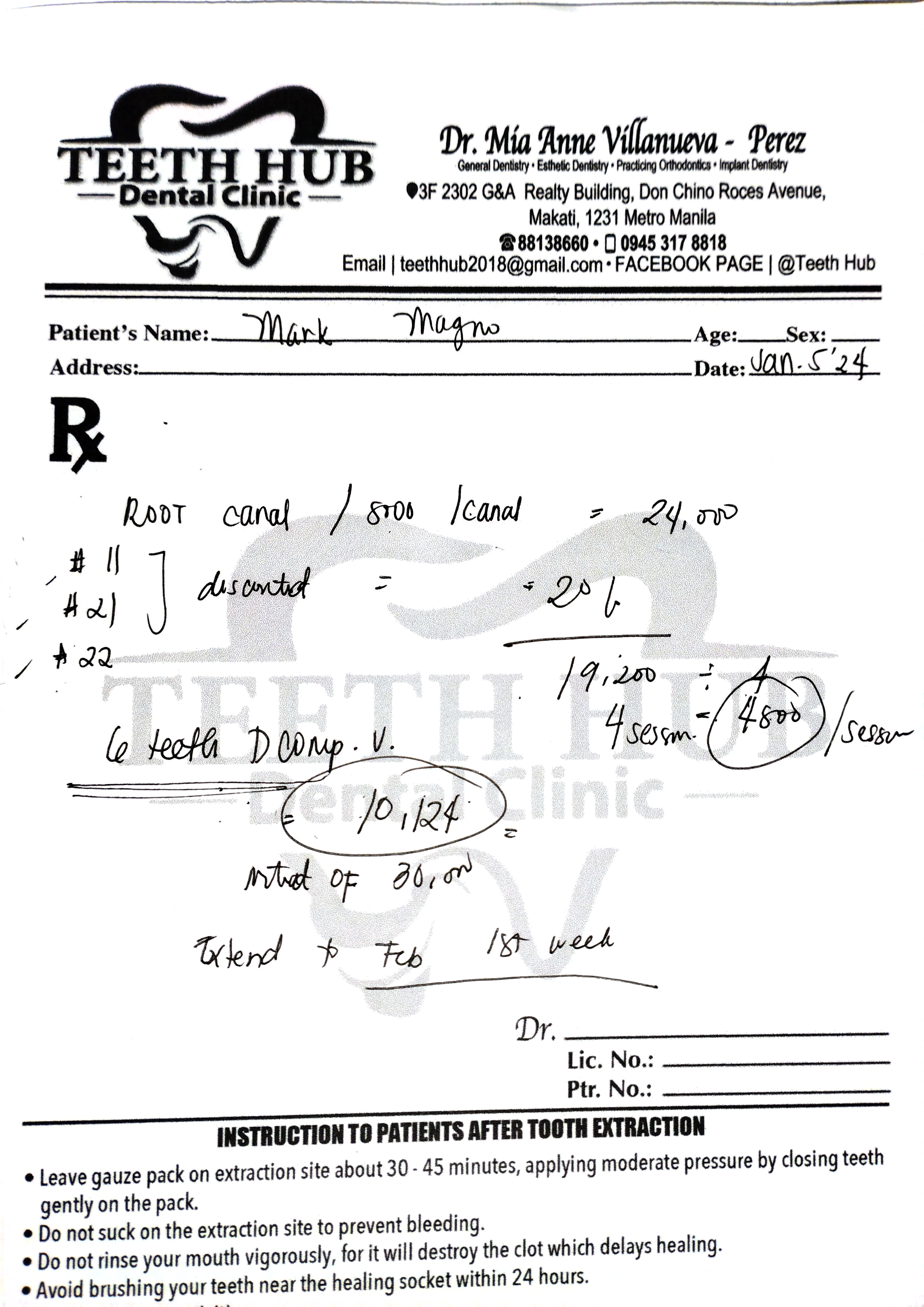 Edit Record Check our patient data records. Add patient information Patient Info Profile picture Last Name First Name Middle Name Birthdate Age Street Barangay City Country Zip Code Contact number Email Procedure 01/05/24 - check up EXO #34 ozone xray 01/14/24 RCT #11, 21, 22 1st open RCT DP 4800/month 02/04/24 RCT #11 - 29mm #21 - 26mm dressing: formacresol 02/07/24 RCT formocresol for obturation next meeting # 22 for pulpotomy 02/19/24 obturate #11, 21 veneers #13 to 23 pulpo #22 fiber #22 File img_20240105_163801.jpg File 2 File 3 File 4 File 5 File 6 File 7 File 8 File 9 File 10 File 11 File 12 File 13 File 14 File 15 File 16 File 17 File 18 File 19 File 20 Retain Record Retain Record Yes No Save Your Changes