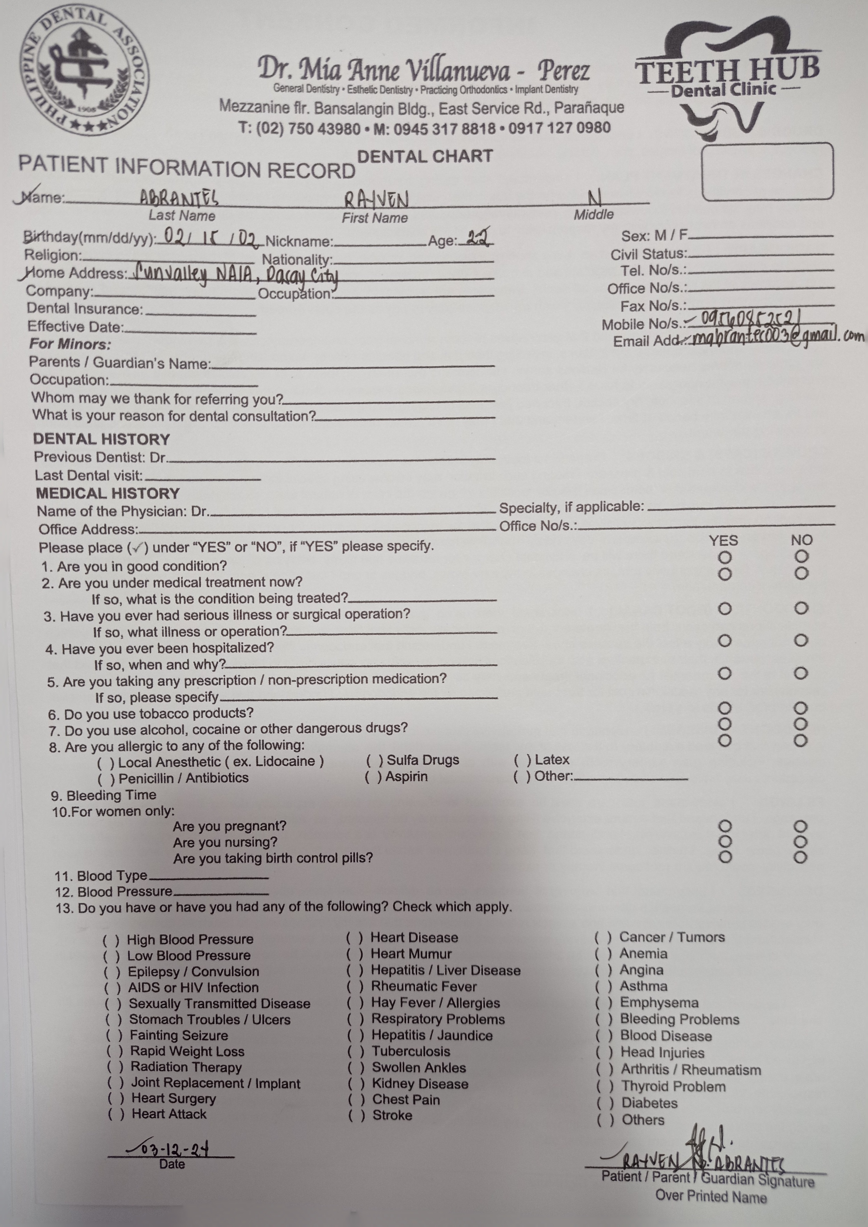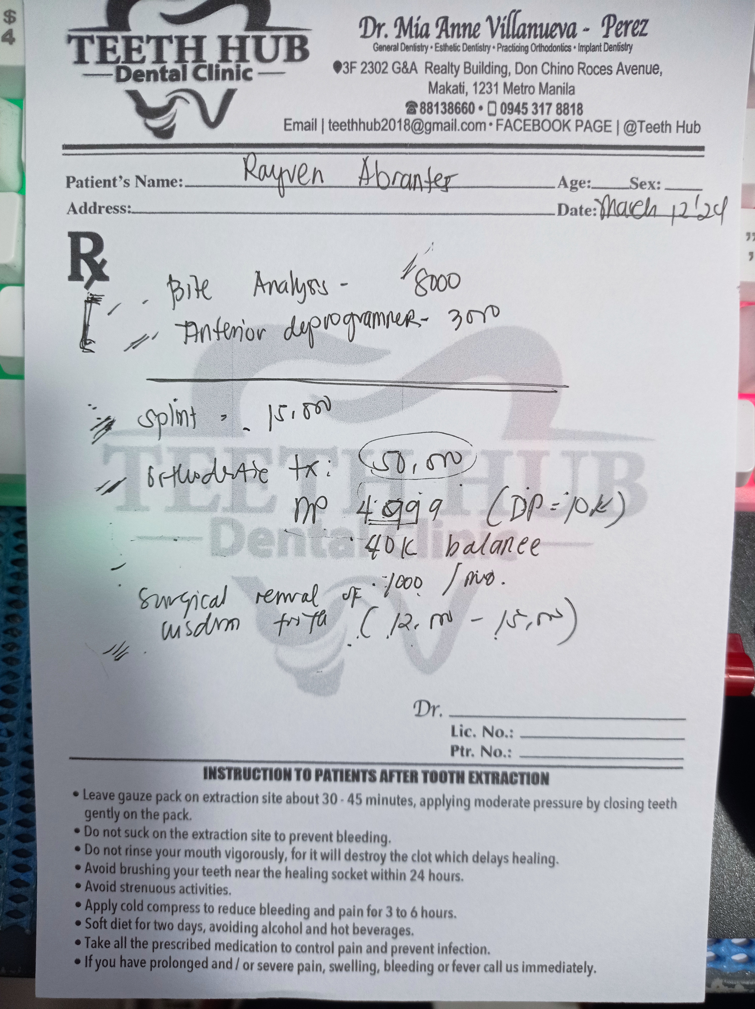 Edit Record Check our patient data records. Add patient information Patient Info Profile picture Last Name First Name Middle Name Birthdate Age Street Barangay City Country Zip Code Contact number Email Procedure 03/12/24 Check up 03/22/24 bite analysis 04-03-24 install of braces genuis metal self ligating hook 3'4'5 ebba NITI 14 U/L #46/ #36 w/ occlusal pads 06/11/24 IPR lower Anterior distal coilspring on #33 10/15/24 Adjust 12/11/24 Adj reattached #12 elastic penguin 03/15/25 adj same wire box elastic fox 05/24/25 Ebba thermal niti archwire .014x.025 w/ pre stop incisal reshape anterior upper fox - box elastic L&R L 14x25 ebba niti 08/16/25 ADJ 10/29/25 adjustment same wire reattach #12 pontics #23 12/18/25 Adjustment Upper Chain Elastic: Penguin 02/27/26 Adjustment Re-Attached #12- #22 File img_20240312_165018.jpg File 2 img_8343.jpg File 3 img_20240313_103618.jpg File 4 img_8341.jpeg File 5 img_20240403_162136.jpg File 6 rayven_abrante.jpg File 7 rayvenabrantes.jpg File 8 File 9 File 10 File 11 File 12 File 13 File 14 File 15 File 16 File 17 File 18 File 19 File 20 Retain Record Retain Record Yes No Save Your Changes