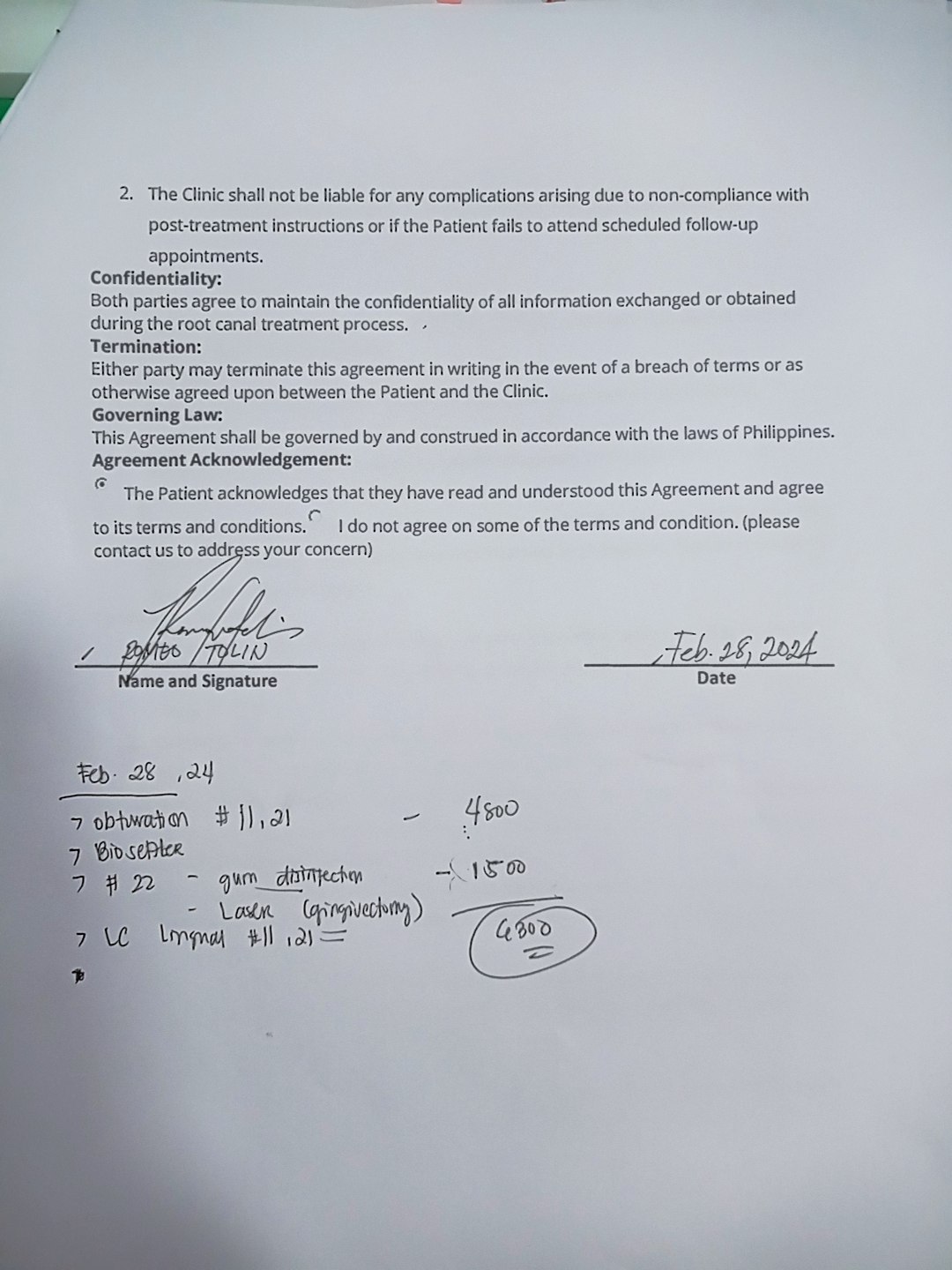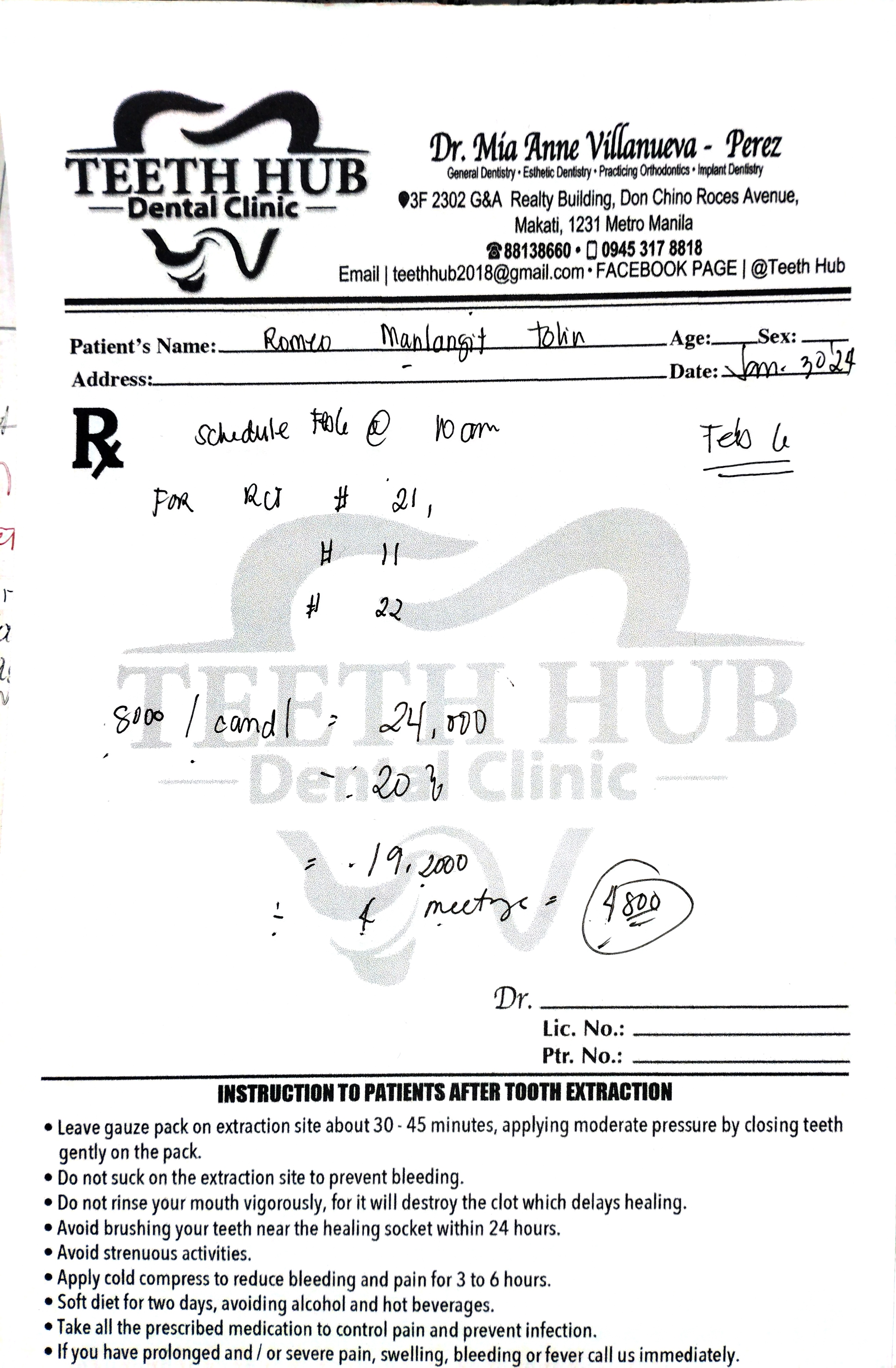 Edit Record Check our patient data records. Add patient information Patient Info Profile picture Last Name First Name Middle Name Birthdate Age Street Barangay City Country Zip Code Contact number Email Procedure 01/ 30/ 24 CHECK-UP 02/06/24 RCT #11/21/22 dressing: eugenol 02/14/24 #11 - 22mm #21 - 22mm #22 - 21mm dressing; #11/21 - camphenol #22 - formocresol 02/21/24 calcium CaOH with barium 02/28/24 -obturation #11,21 -biosealer -#22 gum disinfection, laser gingivectomy -LC lingual #11,21 03/12/24 Veneers 13 to 23-shade A3/B2 for reattached next week #22-formecresol 03/20/24 #22 obturation #22 mastercane #35 Bio C-sealer File img_20240130_110332_1.jpg File 2 romeo_tolin.jpg File 3 img_20240406_115002.jpg File 4 File 5 File 6 File 7 File 8 File 9 File 10 File 11 File 12 File 13 File 14 File 15 File 16 File 17 File 18 File 19 File 20 Retain Record Retain Record Yes No Save Your Changes