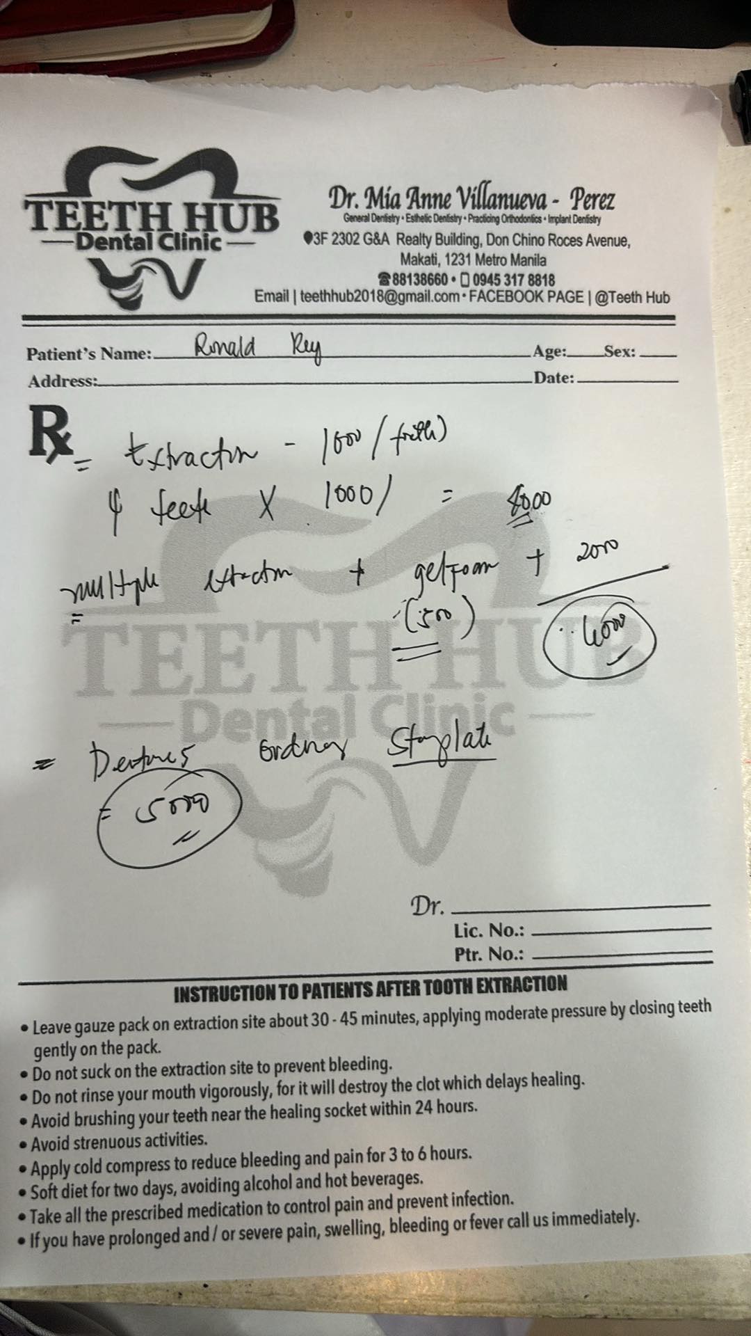 Edit Record Check our patient data records. Add patient information Patient Info Profile picture Last Name First Name Middle Name Birthdate Age Street Barangay City Country Zip Code Contact number Email Procedure 02/28/24 -check up 03/08/24 -Exo #11,21 with gel foam #16 #26 04-05-24 5,000 stay plate shade A3 for trial wax on April 13 for LC #22/12 (M) DP-2,500 04/13/24 trial 04/26/24 LC #21 m #12 m clasp File received_380550814936521_1.jpeg File 2 received_3684495178474573_1.jpeg File 3 img_20240308_143114.jpg File 4 File 5 File 6 File 7 File 8 File 9 File 10 File 11 File 12 File 13 File 14 File 15 File 16 File 17 File 18 File 19 File 20 Retain Record Retain Record Yes No Save Your Changes