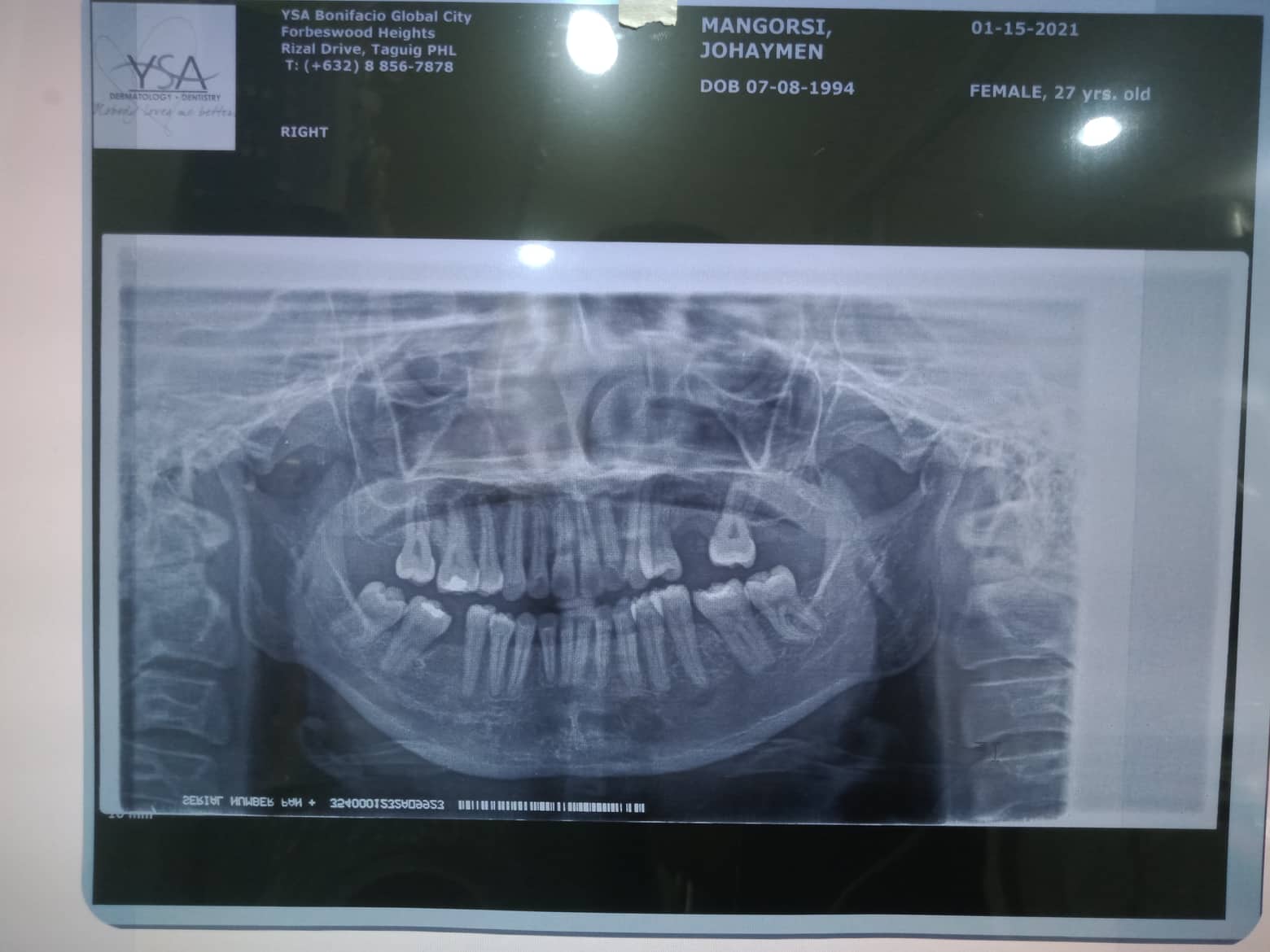 - 01/22/20 Installment of Braces Headway MBT Standard U O-O16 LO 0 014 02/07/25 change power o 12 - 21 ICF 8/17/21 - adj 18ssU/ 16SsL class3 elastic- rabbit 9/08/21-adj same wire- triangle elastic chipmunk 10/09/21- same wire- triangle elastic chipmnk -observe #42- interdental space 11/013/21 - adj. U chain / L individual 12/07/21 - adj . U chain / L ind. 18ss u/l 1/14/22- 16x16 SS Upper , 18SS Lower, Box elastics 13-23, 43-33 2/9/22- 16x22ss U/ 16x16 ss L/ box elastic penguin 13-14 to 43-44/ 23-24 to 33-34 3/18/22- same wire/ same elastic 05/03/22 - same wire/ left quadrant for intrude 06/18/22 - class 2 chipmunk same wire 7/20/22- Adj Same wire 09/20/22- same wire/ reattached 34 ***for removal NOvember 12/28/22- ADJ 02/08/23-adj 06/06/23- Informed Consent Ortho UL same wire RW: #11M, #32M 06/29/17-removal of upper braces for upper retainers lingual retainer on 11 and 21 for upper clip on dentures tooth no. 26 flexite 06/04/24 OP 12/23/24 OP 02/14/25 OP 04/23/25 OP 08/27/25 LC # 47 (O,B)