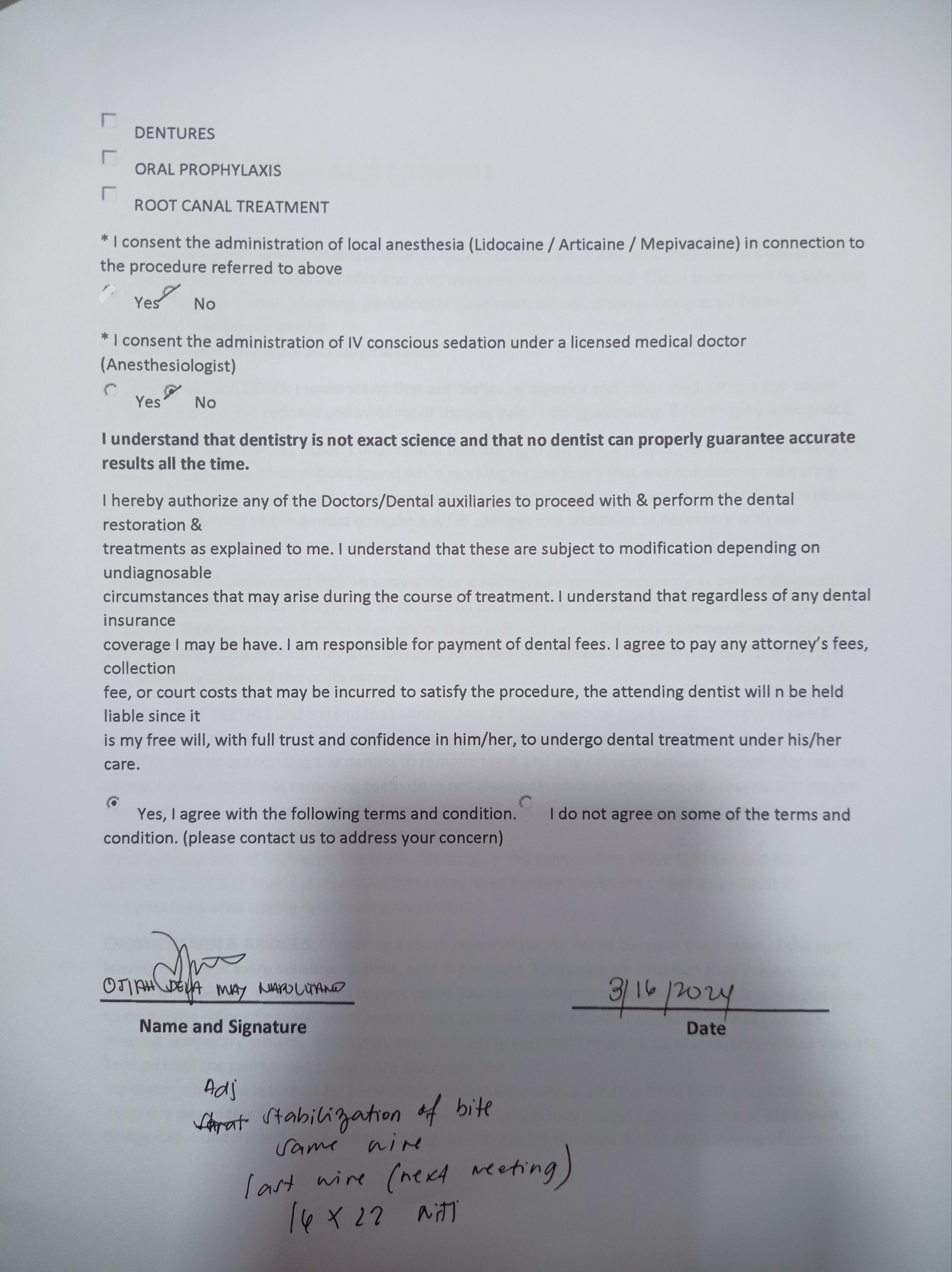 - 8/20/22- Checkup of supernumerary tooth (mesiodens), suggested extraction and ortho tx 9/10/22 - EXO SUPERNUMERARY (MESIODENS) #12, #22, Given post op instructions, prescribed mefenamic acid 500mg for pain 11/04/22-installation of braces/OP 12/3/22- adj 01/07/23- ADJ 02/10/23-ADJ/LC 04/15/23- Removal of Coil Spring/ same wire/ Chain #13-16/ #23-26 05/16/23- Ortho/U - SS- 18 L - Same wire/Ligature wire #12-#22/Chain #13-#16; #23-#26/Fox class 2 07/14/23- same wire reattachment 34 08/18/23- Chain Upper/ Box elastic 14-15 to 44-45/24-25 to 34-35 09/16/23- same wire/ chain U 10/14/23- 16x16ss U 18ss L 11/15/23- ADJ 16x16 U 16x 16 L 12/09/263- same wire, Extrude #11,21 01/13/24 same wire RW on #43 distal chipmunk 13-43 02/10/24- adj 18ss upper LC 37- Occlusal/ mesial class II 03/16/24 Adj stabilation of bite same wire l;ast wire next meeting 16x22 NITI 04/27/24 16x22 NITI cross elastic on posterior all Q 05/01/24 reattachment #26 05/18/24 Adj same wire LC #36 Occlusal #11 mesial (in) #23 mesial (out) 07/27/24 Adj same wire ligature wire 08/24/24 same wire chain U/L 10/19/24 removal of brace with retainer 02/15/25 LC #16,#17 Occ+lingual pit 03/22/25 LC #26 lingual pit class II mesial OP 12/27/25 Oral Prophylaxis - light Xray LC #46 - OCC #47 - OCC #36 - Distal, Occ #37 - Mesial, Occ 01/24/26 Rx. prednisone