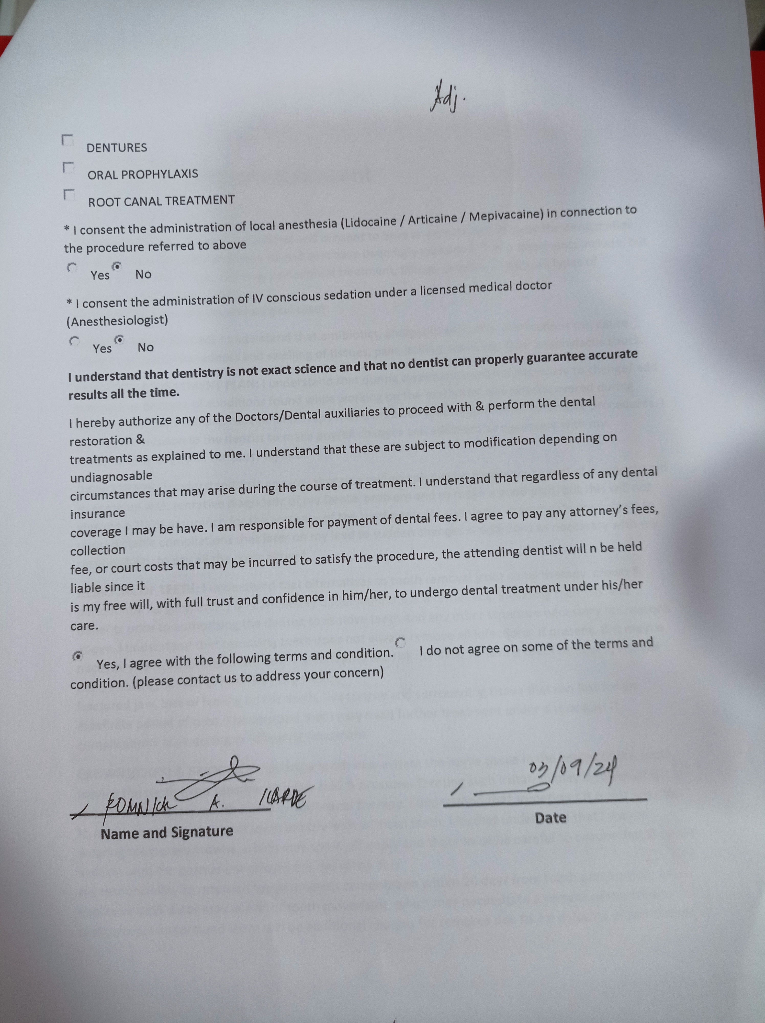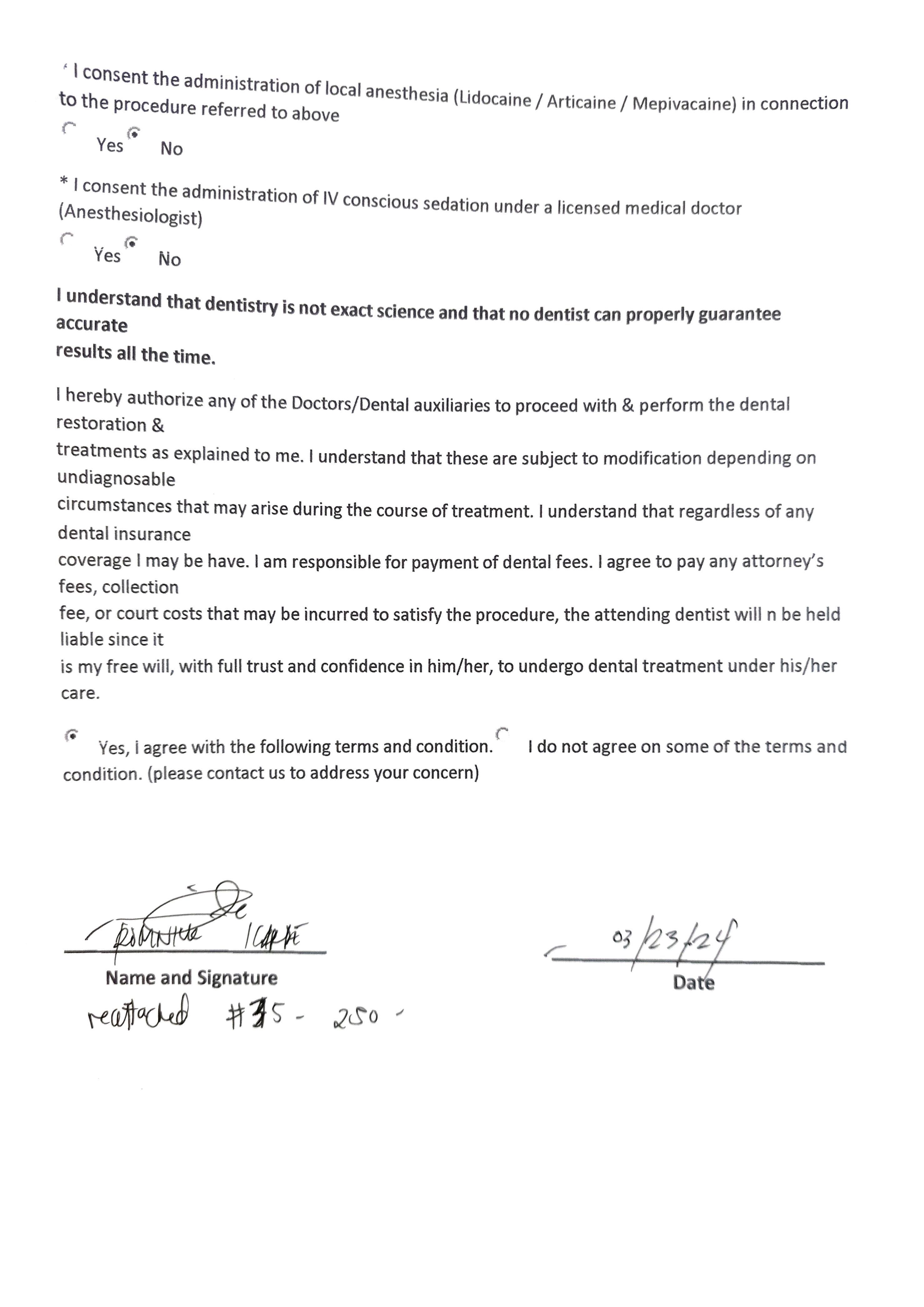 - 04/28/23- 14UL NITI/individual/Request for #17 molar band 05/27/23- UL - NiTi - 16 Ligature wire - #11-#21 Molar band #16 07/13/23- same wire coil spring 15-14 bumper 15-17 Rw 34 LC 12 mesial facial 08/19/23- Active coil spring- Mesialize #14 Lower 16ss Chain 32 ro 42 09/16/23- 16 ss U, 18 ss L/ Chain 13 to 23, chain 43 to 33 (to Left), RW #42 10/06/23- 18 ss UL/ chain lower/ class 3 elastic fox #15 to mesial 11/11/23- same wire/chain lower, #15 to mesial, Class 3 elastic penguin 12/01/23- 16 ss loop lower class III penguin 01/13/24 same wire class 3 elastic penguin 02/09/24 ADJ 18 ss L chain L Class III elastic rabbit 03/09/24 Adj 03/23/24 reattachedment #35 04/06/24 same wire #12 extrude and cinch out elastic #17 to 43 closing space on Q1 05/07/24 same wire chain L 05/17/24 removal of brace