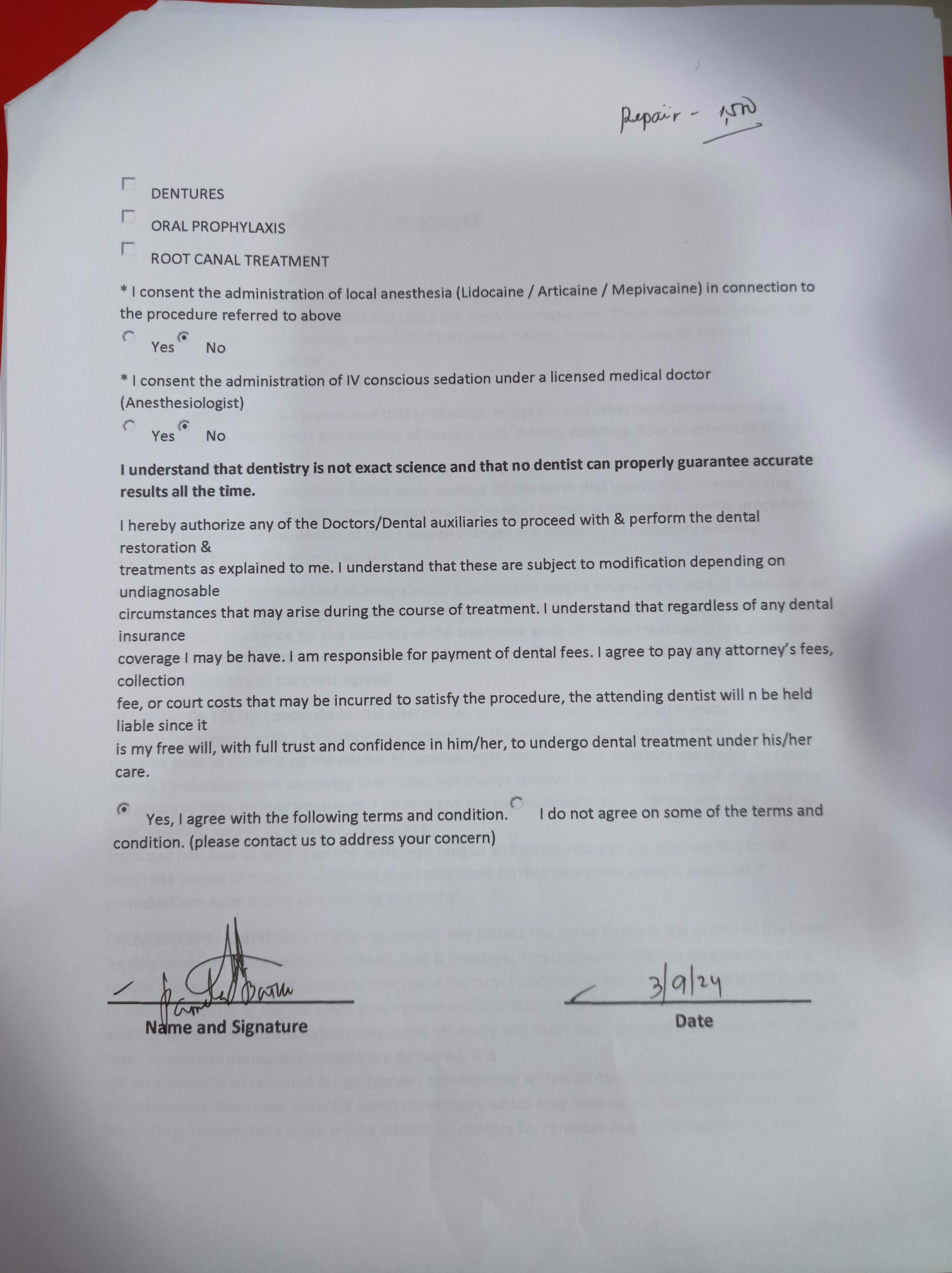 - 01/10/24 6 units veneers - direct composite shade B2/A2 13, 13, 11, 21, 22, 23 OP 03/09/24 Repair veneer 04/24/24 LC #24 occ Lc #26 OCC, mesial,lingual, Caoh LC #36 Occ (deep seated) buccal,Caoh OP 05/03/24 exo #46 gel foam