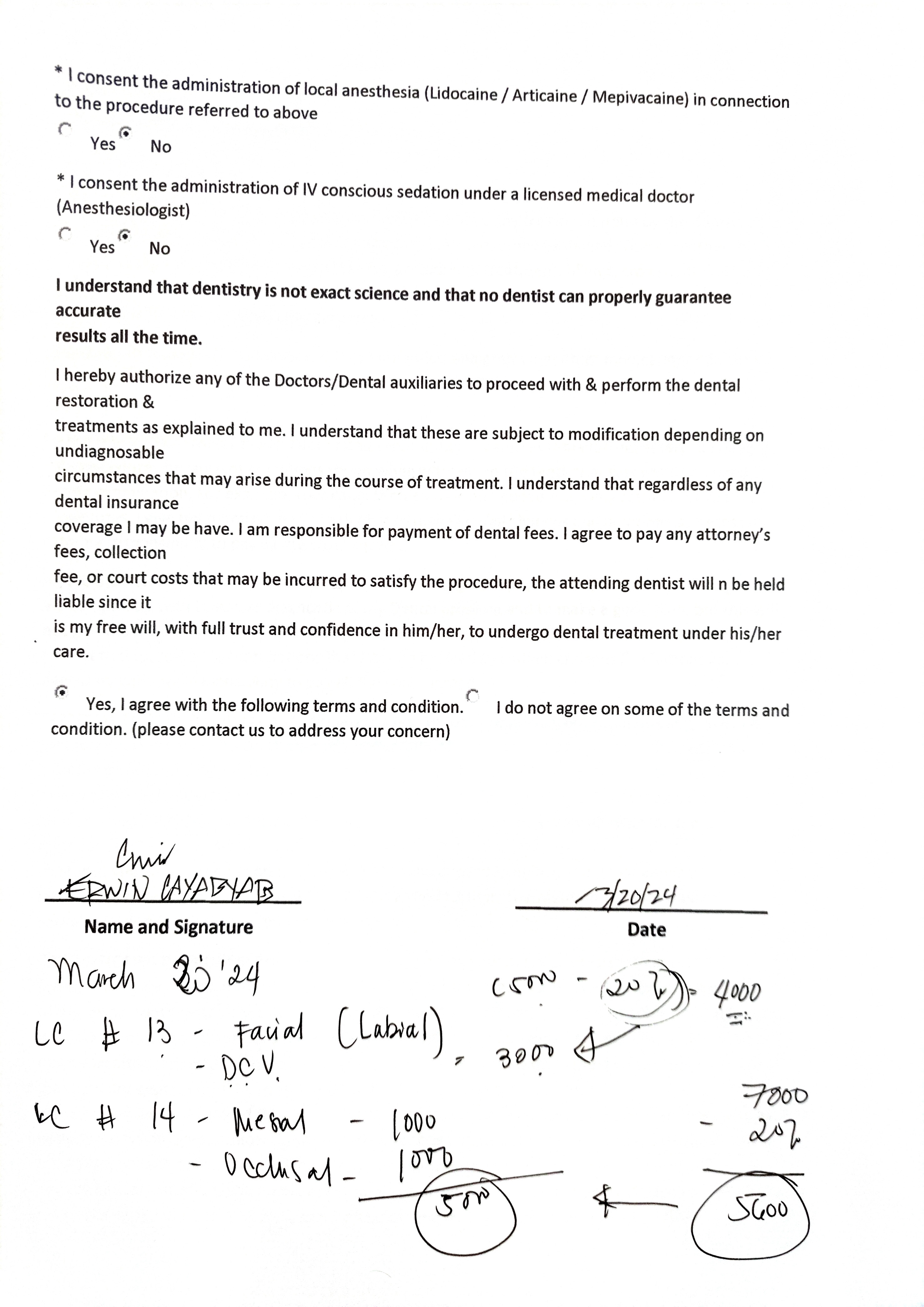 - 03/20/24 LC #13- facial (labial) -DCV LC #14-mesial -Occlusal