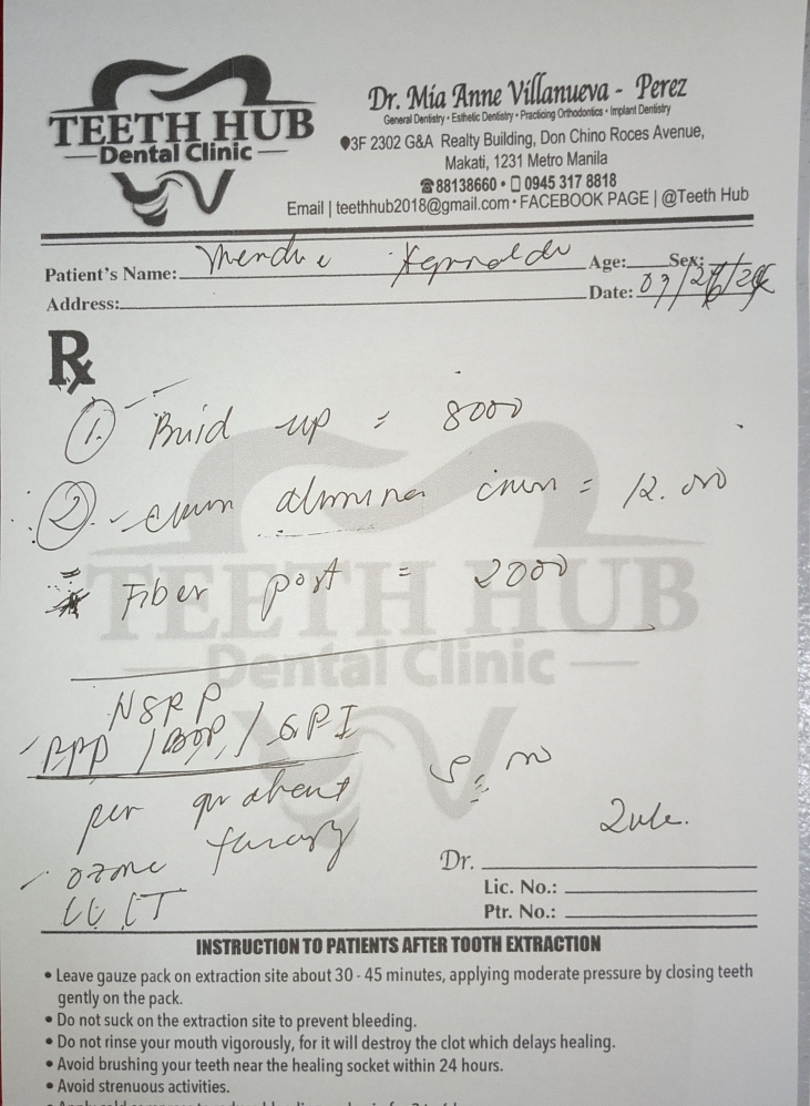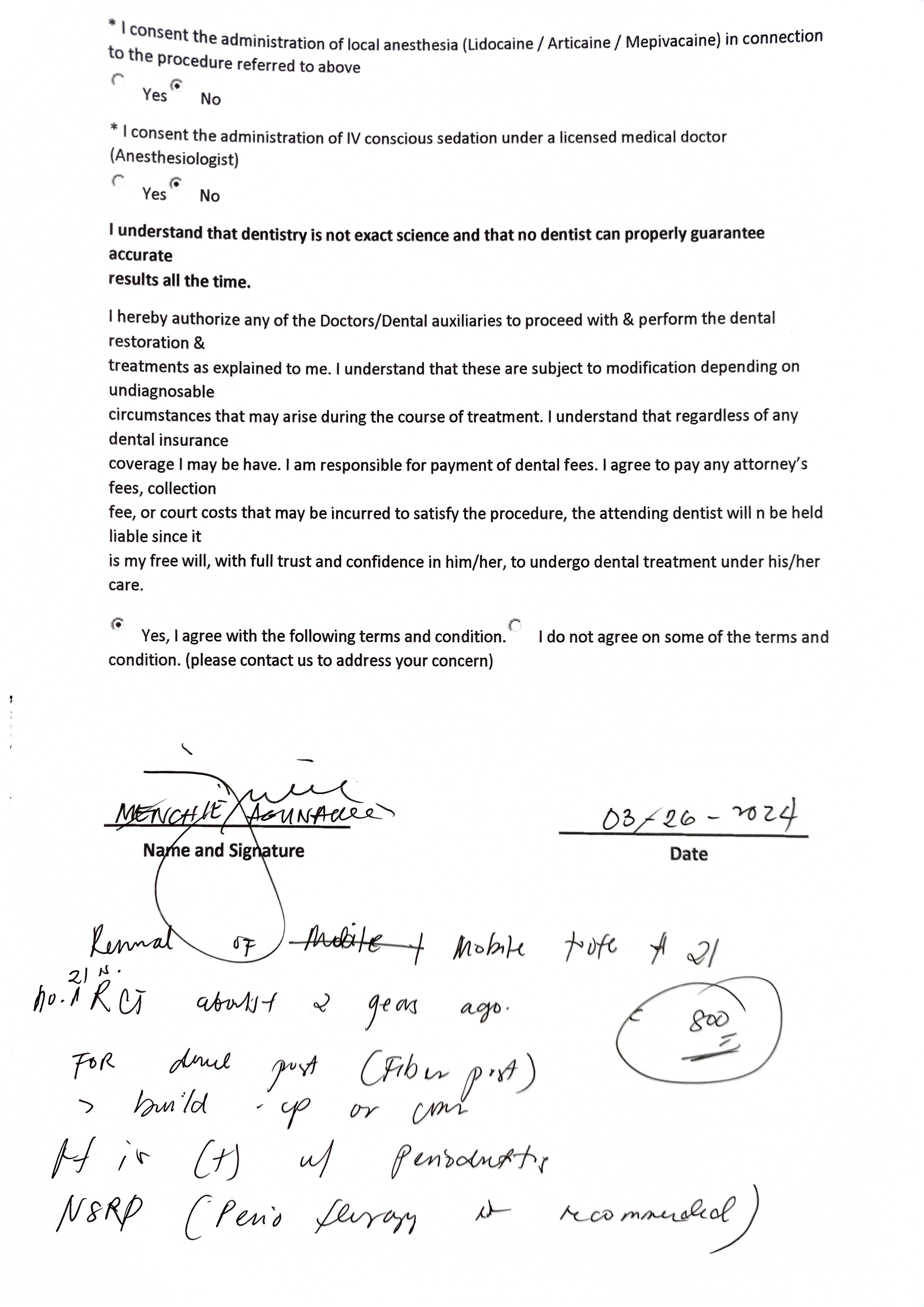 - 03/26/24 Removal of mobile tooth #21 #21 is RCt about 2 yrs ago for dental post ( fiber post) build up or crown pt is + for periodontics NSRP (Perio theraphy is recommended)