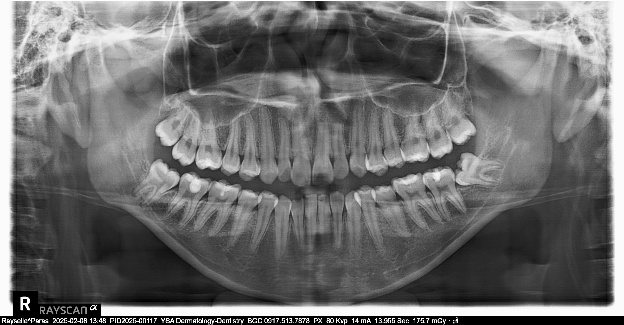 - 02/08/25 check up 02/15/25 installation of brace MBT slot 0.22 slot 14 NITI U/L w occlusal pads 03/29/25 RW #12,13,42 same wire 04/26/25 Adj 16 NITI U 05/31/25 adj 16 niti l nw bt #26 06/28/25 Adj same wire 07/29/25 Odontectomy #48,#38 w/ IV consious sedation 11/11/25 adjustment same wire upper 14 niti- upper lower 16 niti reattach #42 2/28/26 NOTE: 2 MONTHS DELAYED UPPER 16 NITI CLASS III ELASTIC FOX 3.5 OZ FROM 33 TO 26 AND 43 TO 16 Re-attached #34 Re-attached Buccal Tube #16