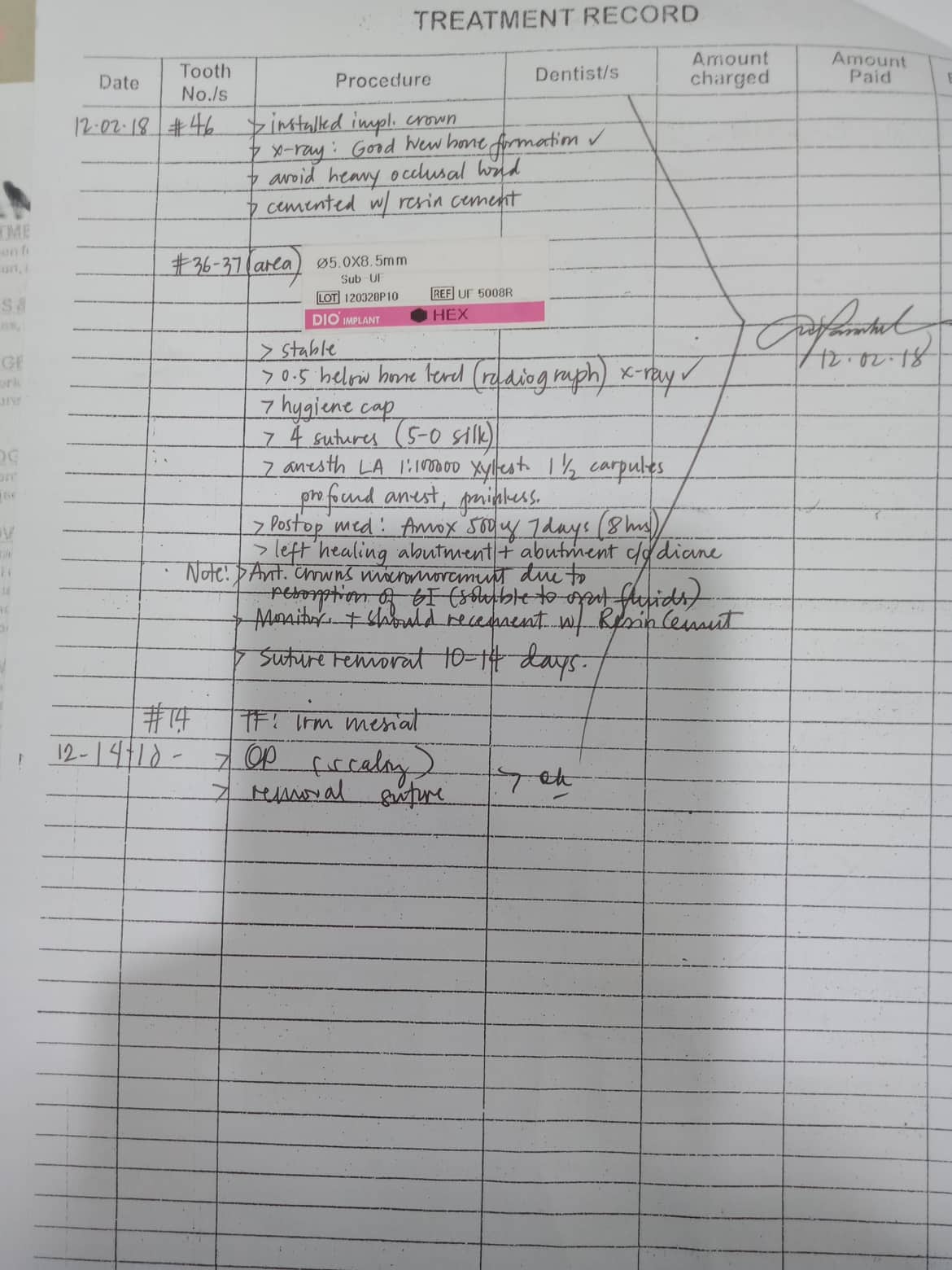 - 10/19/21- check up on implant -boneloss implant #46, 34,32, 42, -perio -implantitis#36 06/03/23- lower ordinary dentures new ace shade a3 06/24/23- Informed Consent Trial Fitting Denture Inquired regarding restoration of #13/#14 - took PA radiograph informed the patient that tooth is for extraction since the caries are extensive. *************************************************************************************************** 30, 000 total 6/10/23- DP 10, 000 for bone grafting and implant recovery 11/04/23- DP 5,000 for bone grafting 04/26/25 consultation graft = 80,000 = 50,000 PRF/CGF = 30,000 = 20,000 implant x2 = 90,000 (180k) = 100,000 Lower IVOCAP = 120k = 60,000 +attachment on existing implant = 30k total = 260,000 -15,000 down payment Total= 245,000 05/07/25 ivocap denture Upper bal.20k 06/11/25 Exo #13, #14 bal for denture 17,500 06/20/25 install ivocap denture bal.17,500