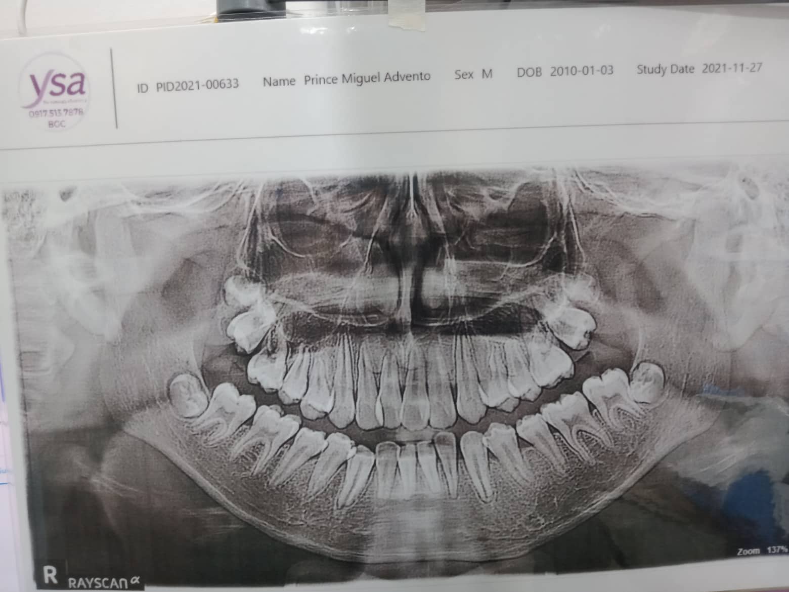 - 09-28-2019 > OP = 600 02-29-2020 > AMELO PLASTY > FLOURIDE DURAPHAT= 500 11/27/21- OP / EXO # Upper B cast Analysis , Soft Tissue Analysis requesr pano & ceph xray. Total 70,000 12/8/21- MBT 0.22 INSTALLED 14 NITI UL/ ORTHOBRUSH/WAX *FOR RESTO 37/35 1/28/22 - ADJ Same wire Reattached # 26 3/8/22- 1 reattached 15, installed chin cup appliance. 16 niti UL 04/20/22 1 lost BT 26 18 niti U/ 16 ss L with loop class 3 elastic fox 06/01/22 Adjustment/ 18 niti/ 16 ss lower fox class 3 with loop 7/20/22- class 3 elastic fox same wire upper , 18 ss lower. 9/18/22- SAME WIRE; REATTACHMENT #45; IND UL; LIGATURE WIRE #32-#42; PENGUIN 10/15/22 - new BT 16, 26, 15, 45 upper 11-21 chain posterior lower chain RW 41 16ss u/ 18ss L- class 3 elastic penguin 11/29/22-Lc #37,47 CoaH 2 missing(Buccal Tubes) 1 reattached/adj/wax 01/21/23 Same Wire U/L - Reattach #43, #15 Chain #12-#22,#36-#33,#46-#43 01/21/23-same wire/ 1 reattached # 43,15/ chain #12-22, #36-33, #46-43 4/04/23- Same Wire L 18ss/ R#42,35/ Penguin Class 3 / #12D,41M 05/28/23- OP Adj - U: same wire; chain; reattach #13 L: 16 NiTi; individual; ligature wire #41 - #33, #43 - 44; reattach #42 Elastics: Class 3 rabbit 07/07/23- 16x16 SS-U/16x16 NiTi-L/ removed all occlusal pads( class 1 Canine to Canine) 08/02/23- 16x16SS lower 09/01/23- 16X16SS UL with canine to canine chipmunk 09/30/23- 16x22 UL, LC # 26 OL 11/04/23- adj FOR REMOVAL BY OCT-NOV 12/28/23- removal of Braces. lingual retainer Anterior U 01/16/24 installation of retainer 05/29/24 OP