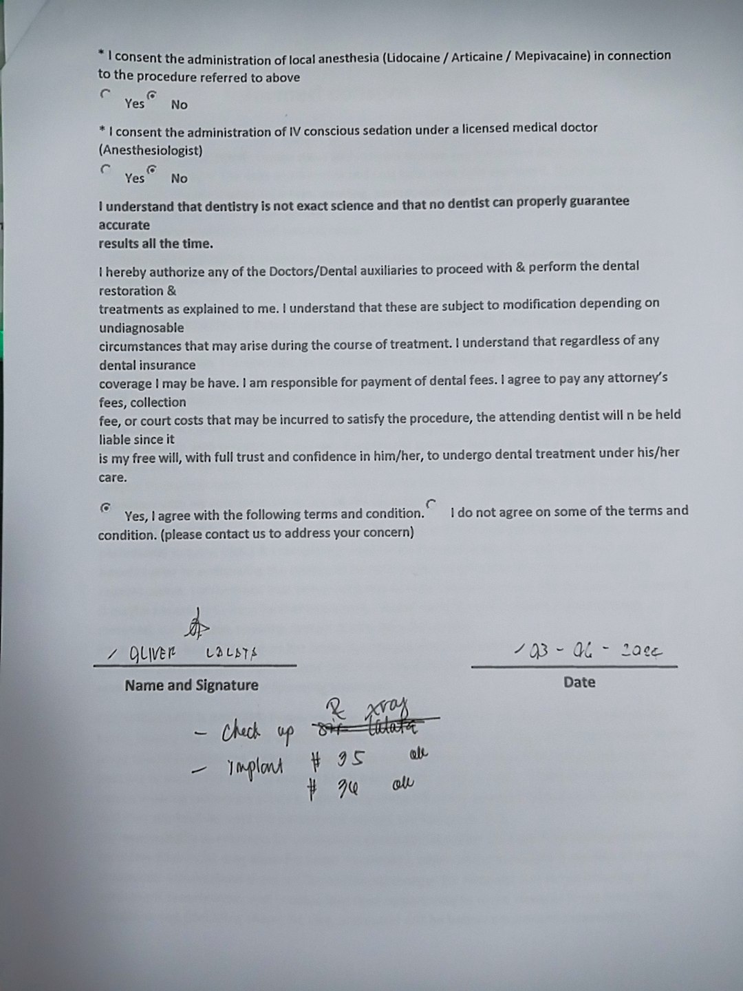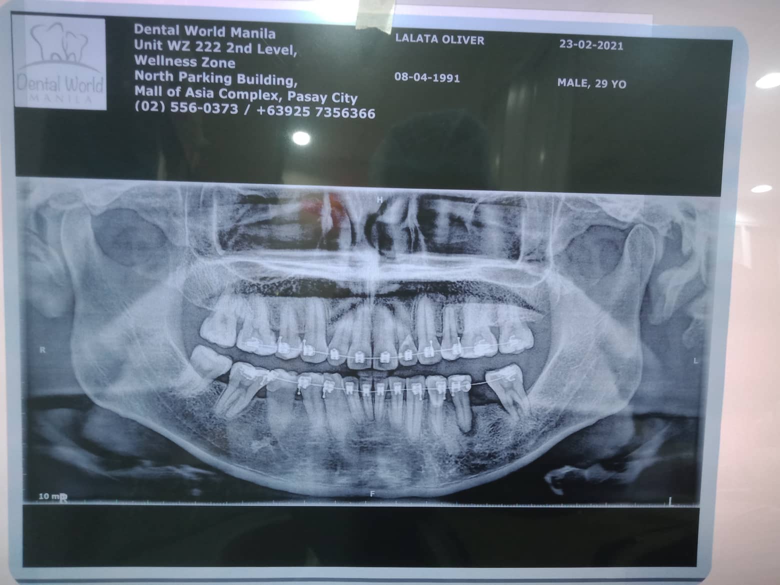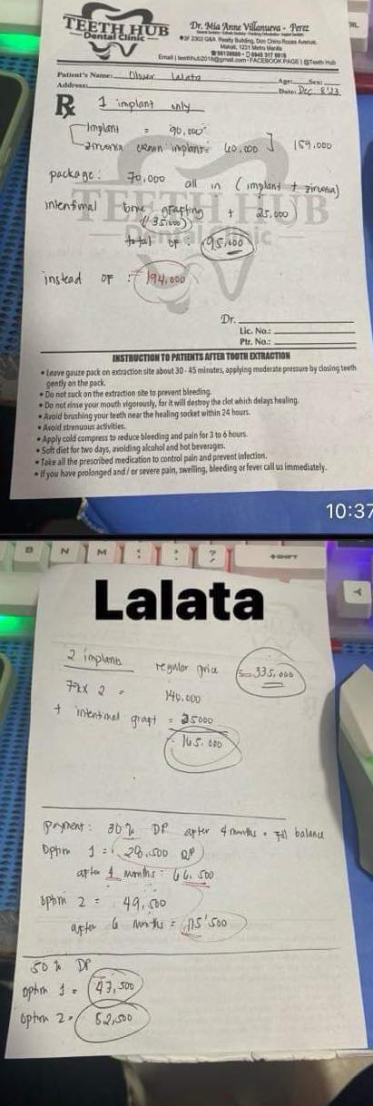 - 10-05-2019 > CONSULTATION = 300 > CUTTING OF DISTALIZE WIRE =300 8/17/21 adj 18ssU/L18SS box elastic fox 23-24 to 33-34 note: reattached 45/ 35 9/24/21- 45 premolarband reattached 23/31/35 18SSUL 10/26/21- ADJ reattached 35/43/46 chain upper/ rpi 41/34 chain 4 anterior lower 12/04/21- adj reattached 46/ 23 same wire/ chipmunk 13 to 43/ 23 to 33 upper anterior double chain powero 01/28/22- 18 niti U/ 16 ssL change BT 46/ lingual B 45 02/26/22- ADJ 16 SS u/L REATTCHED 21/22 04/19/22 - reattached 23/ 45 18 ss u/l 5/28/22- 18 ss UL / chain 41-31-32 07/15/22- 18ss UL/ ligature wire 41-42-31-31 08/20/22- 16.16ss U 08/27/22- PROVISION 11/21/22/12/31/41/32 FOR INCISAL EDGES RESTORATION 10/01/22 - REATTACH #23, #34, #45; RESTO #26(LINGUAL), incisal edge restoration: 11/21/22/12 16x22 U chain/ 18 ss L ind. 12/14/22- Adj/3 reattached 01/12/23- ADJ/3 REATTACHED 02/11/23- UL SAME WIRE /occlusal pads #34, #45 #21, #26, 06/27/23-22- mesial LC 11/21- polished and retouched 43- Inc/ F 41-inc/f 31- inc/f 32-inc/f 33-inc/f removal of braces OP/ polished impression U/L *for retainer *for filling 34 cervical 35 cervical 37 occlusal 07/05/23- LC 27 ooclusal Lc 17 lingual Lc 37 small side of mesial LC cervical of 35, 34 LC occlusal with caoh 47 07/26/23- request panoramic LC cusp Distolingual #37 08/09/23- Perio tx/ NSRP Q3 and 4/ 12 series PA X-ray Done 09/20/23- PERIO tx NSRP Q1 Q2 new retainers vacuumed 03/06/24 -check up and xray -implant #35 ok #36 ok 05/11/24 OP air polisher stain removal 06/14/24 3D Scanning 10/25/24 scanning 12/18/24 cementation of 2 teeth 03/29/25 Op w/ air polisher